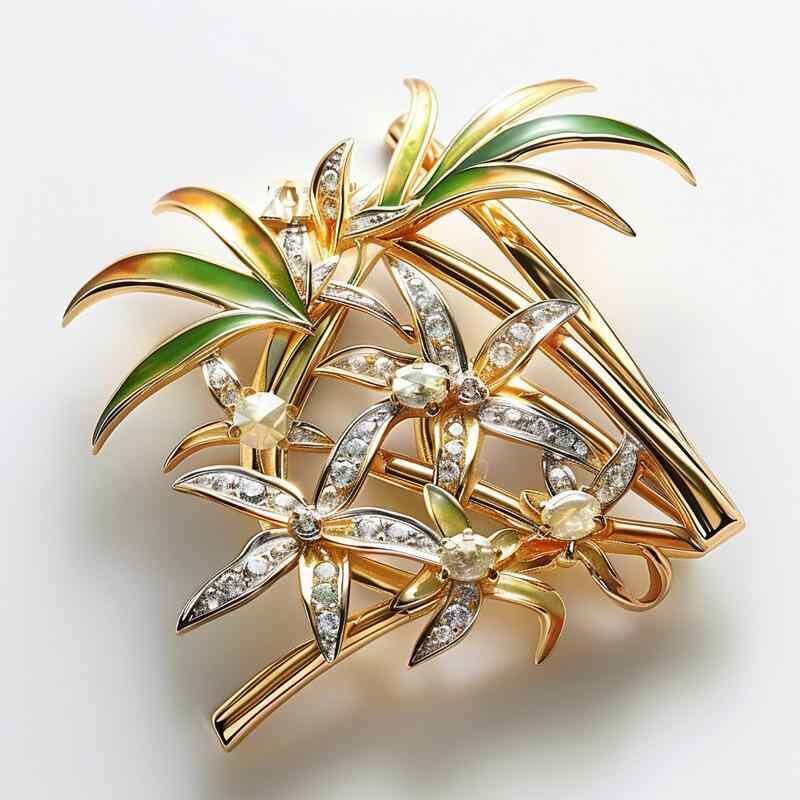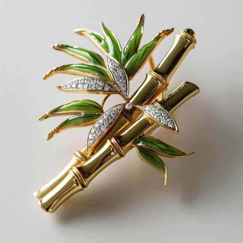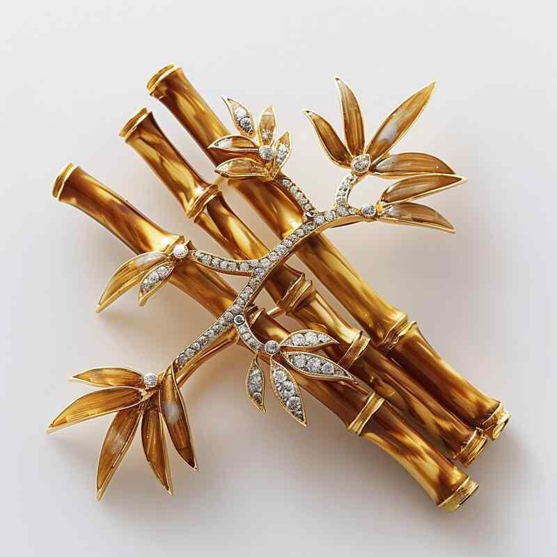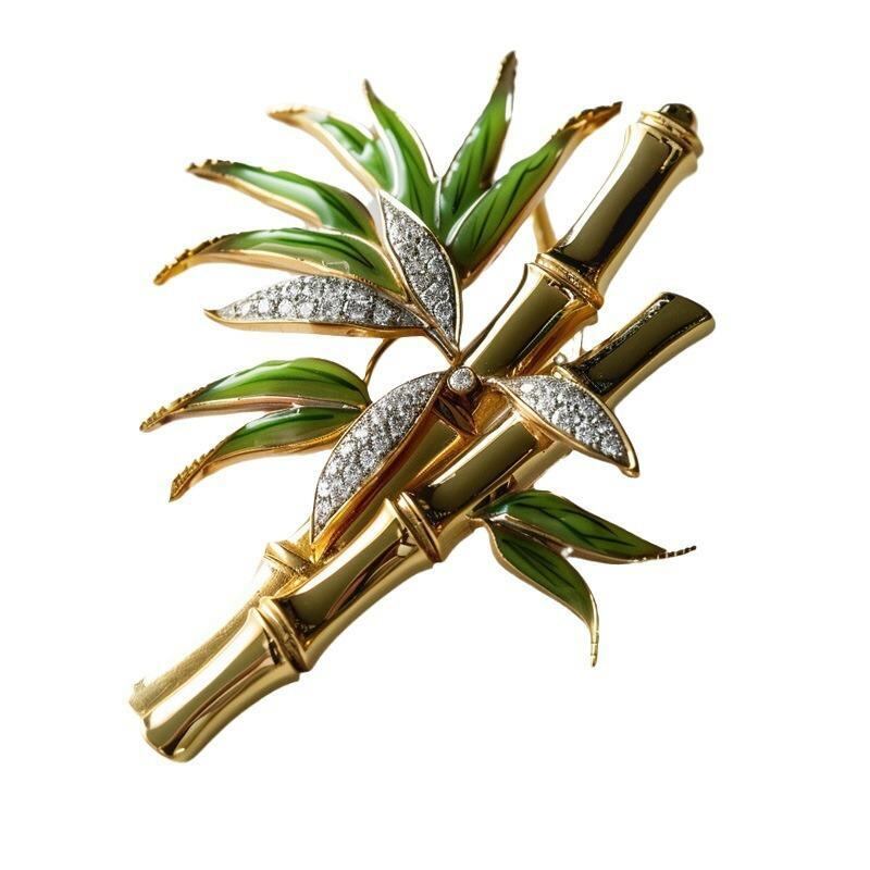 ブローチ レディース 竹モチーフ 銅製 本金メッキ 個性的 高級感 ビジネス フォーマル オフィス 普段使い 縁起物