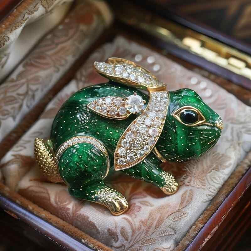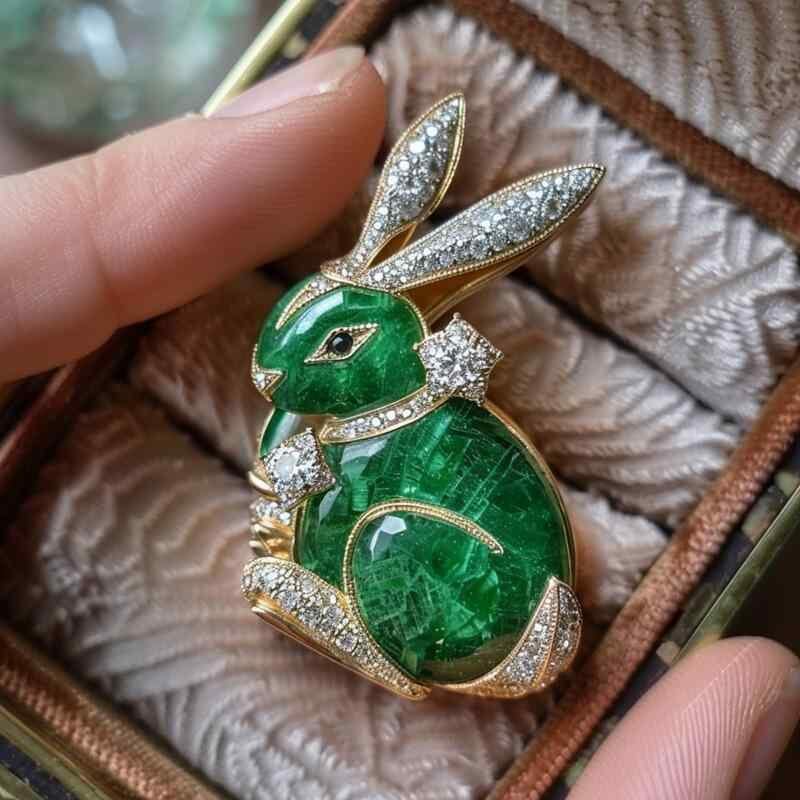 ブローチ レディース 女性用 高級感 かわいい うさぎ ラビット 動物モチーフ エメラルドグリーン 翡翠色 アニマルデザイン 銅製 電気メッキ加工 ギフト プレゼント アクセサリー おしゃれ 上品