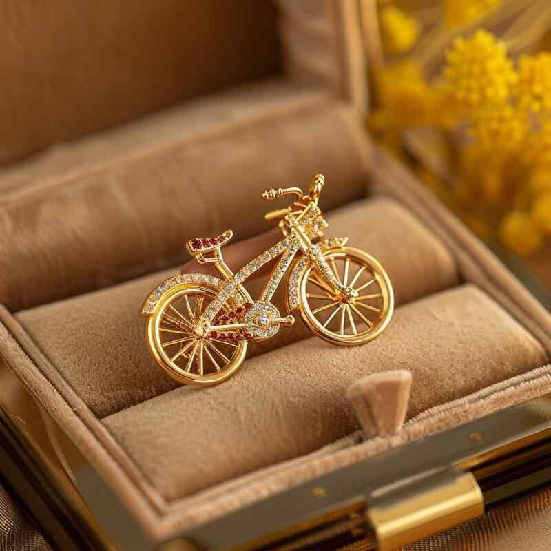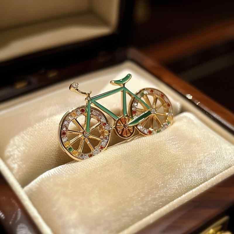 ブローチ レディース 自転車 モチーフ レトロ ヴィンテージ ライトグリーン 銅製 金メッキ ジルコニア 高級感 ファッション小物 ピンブローチ プレゼント ギフト 飾り