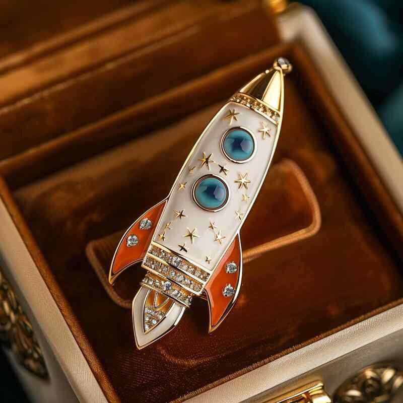 ブローチ レディース ロケット 個性的 エナメル ジルコニア 豪華 高級感 銅製 電気メッキ加工 秋 プレゼント 記念品 オリジナルデザイン