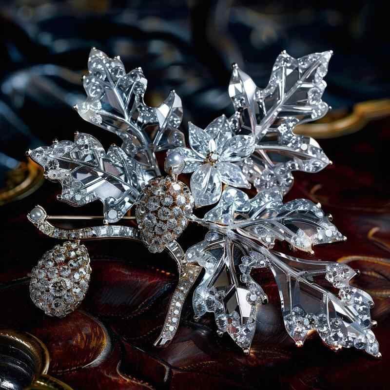 ブローチ レディース コサージュ ピンブローチ 西洋ヒイラギ 花モチーフ クリスタル 銅製 ヴィンテージ風 高級感 繊細な細工 エレガント アクセサリー ジュエリー パーティー フォーマル 結婚式