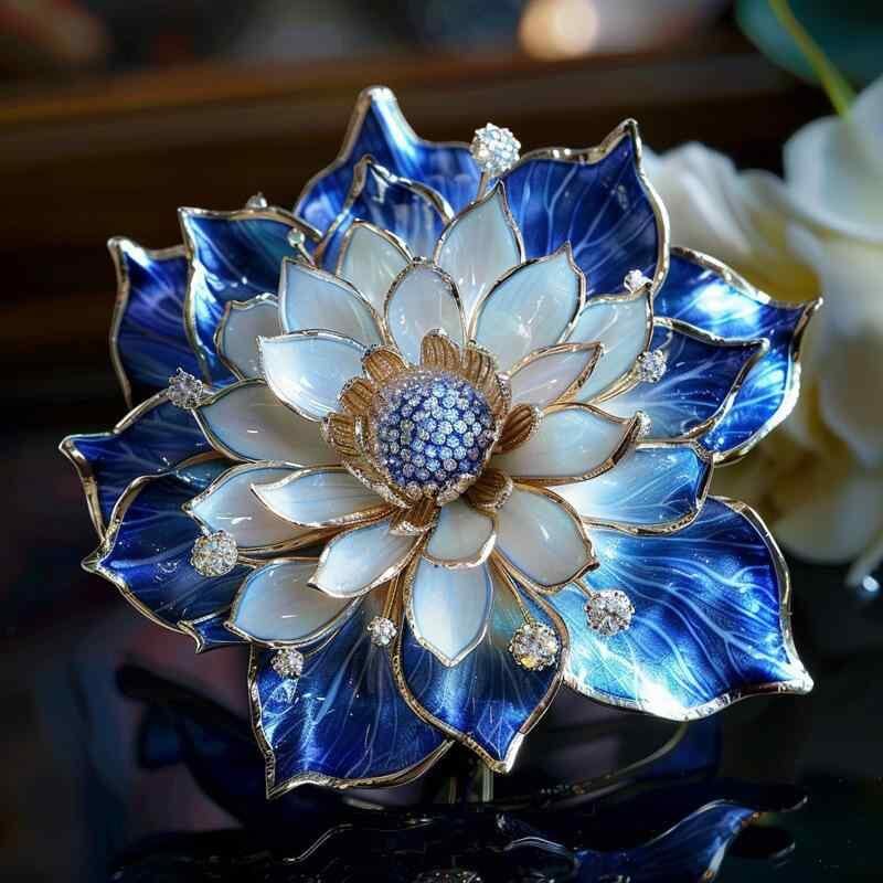ブローチ レディース アクアブルー グラデーション ダリア フラワーモチーフ 豪華 琺瑯デザイン 高級感 アクセサリー フォーマル 結婚式 お呼ばれ パーティー 普段使い 上品 エレガント