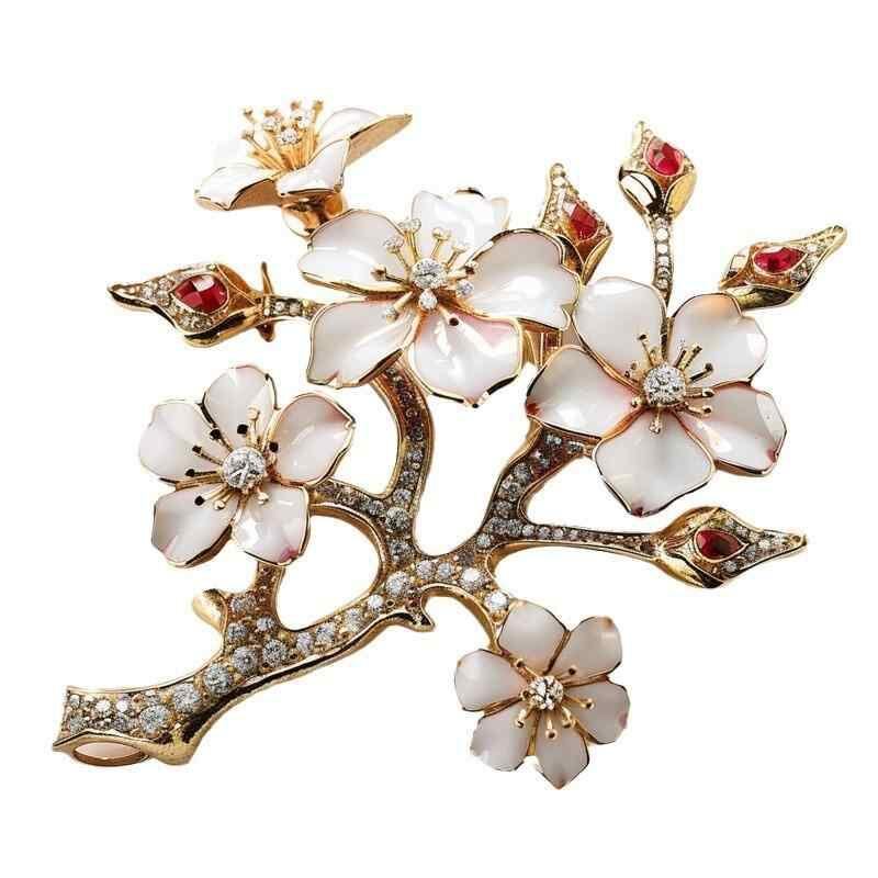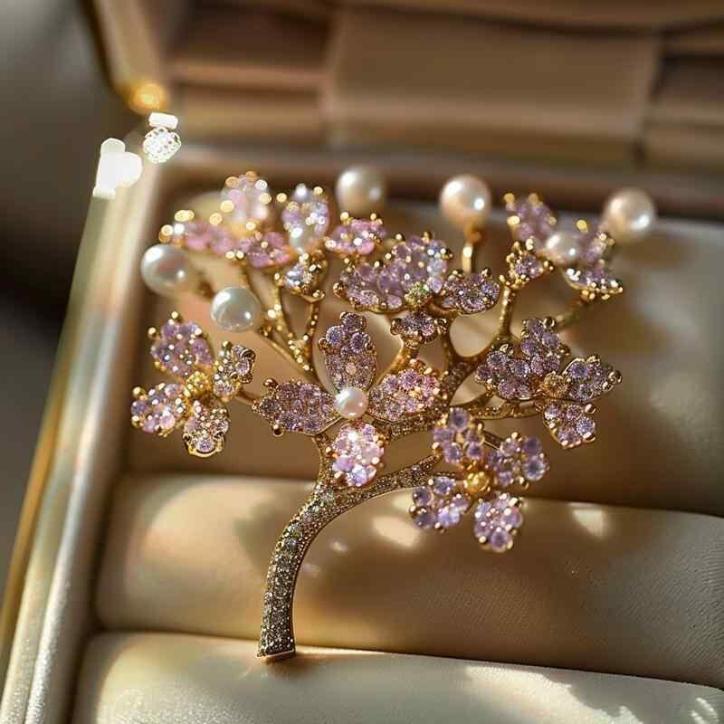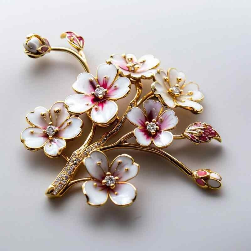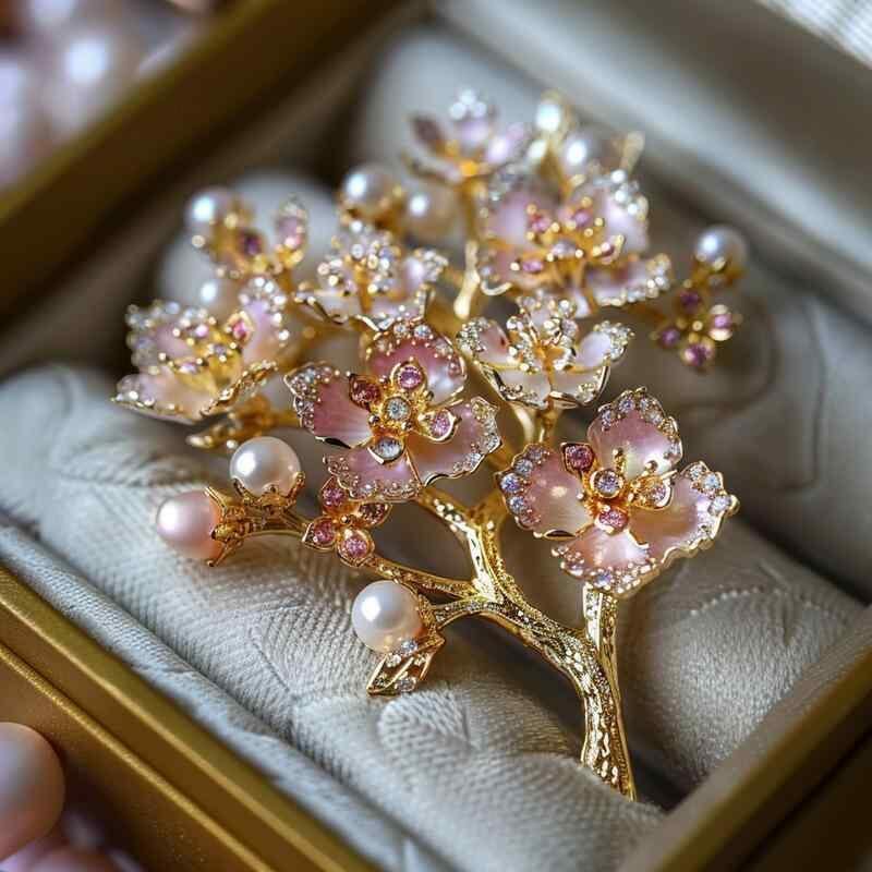 ブローチ レディース 女性用 桜モチーフ フラワー ラインストーン 高級感 繊細 銅製 電気メッキ加工 ギフト プレゼント