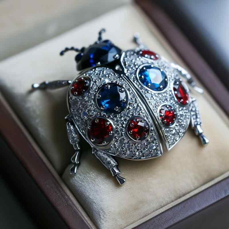 ブローチ レディース かわいい ヴィンテージ 水晶 ジルコニア てんとう虫 銅製 電気メッキ加工 オリジナルデザイン レトロ 高級感 アクセサリー 装飾品 ギフト プレゼント