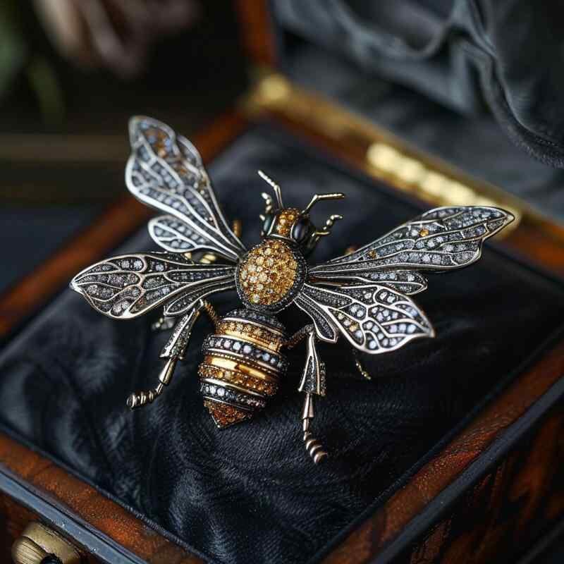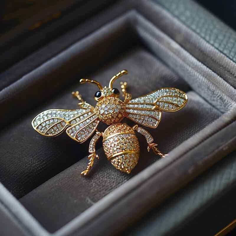 ブローチ レディース 高級感 貴金属 蜂モチーフ ジルコニア装飾 銅製 電気メッキ加工 オリジナルデザイン スーツ ジャケット アクセサリー ギフト