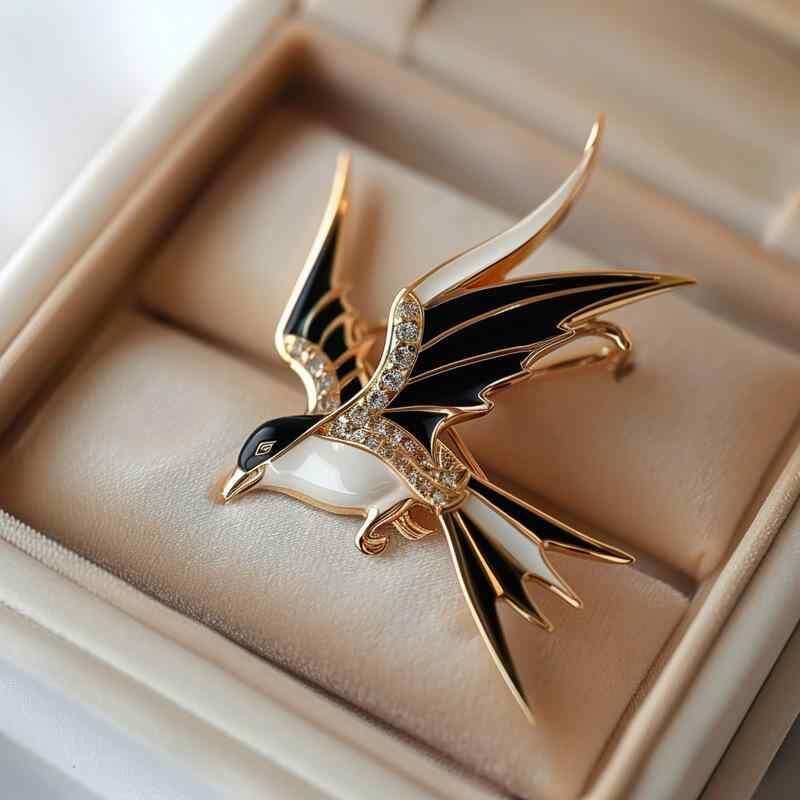 ブローチ レディース 女性用 燕 ツバメ 鳥モチーフ ジルコニア エナメル 高級感 上品 エレガント 煌めき 華やか 銅製 電気メッキ加工 アクセサリー ジュエリー パーティー 普段使い ギフト プレゼント