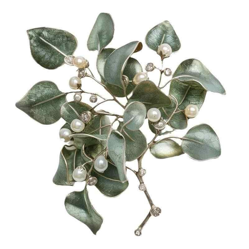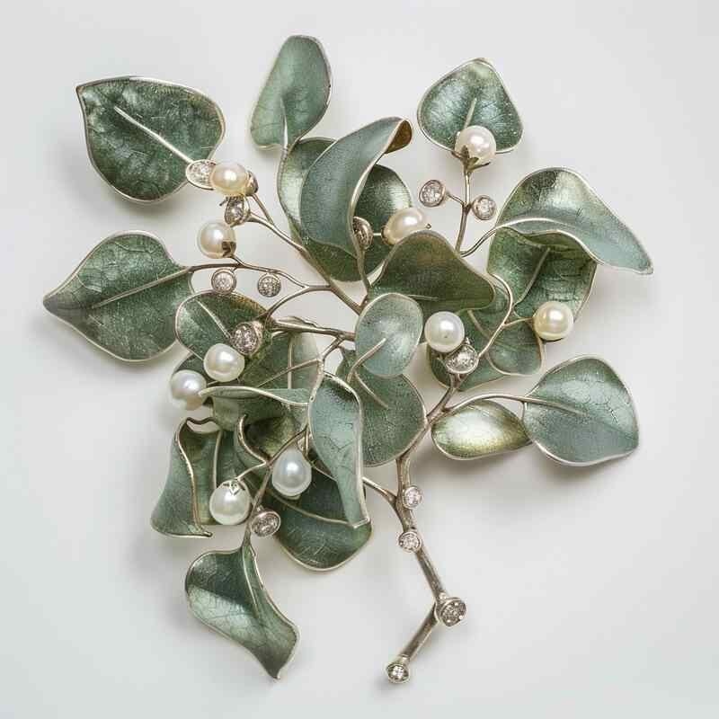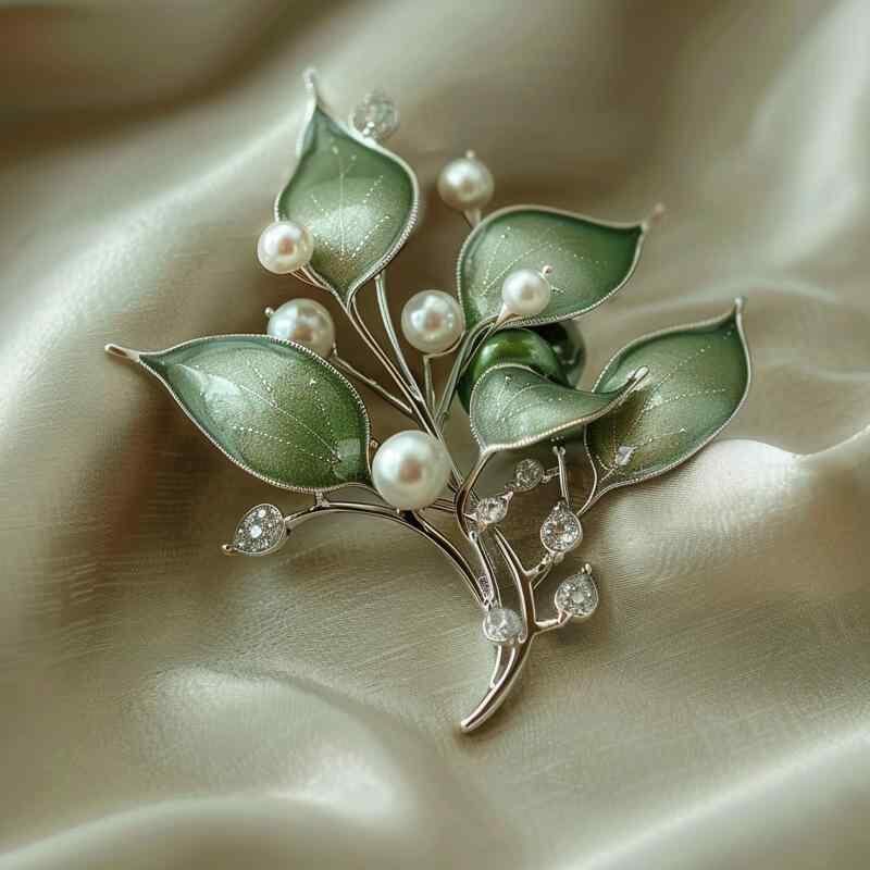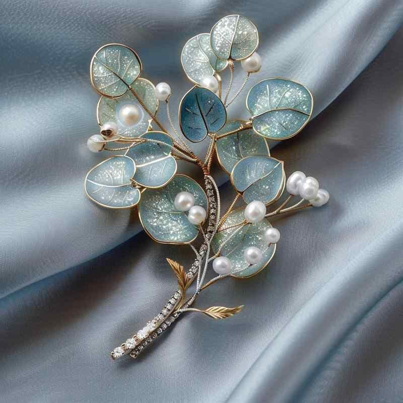 ブローチ レディース 七宝焼 淡水パール ユーカリ 秋冬 高級感 上品 エレガント 真鍮製 電気メッキ加工 チャイナドレス パーティー アクセサリー