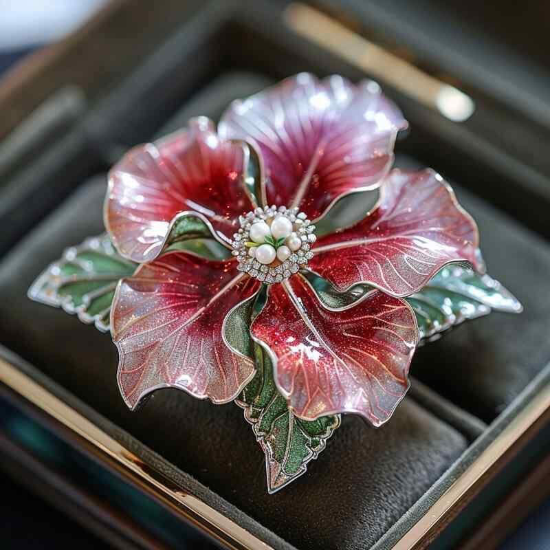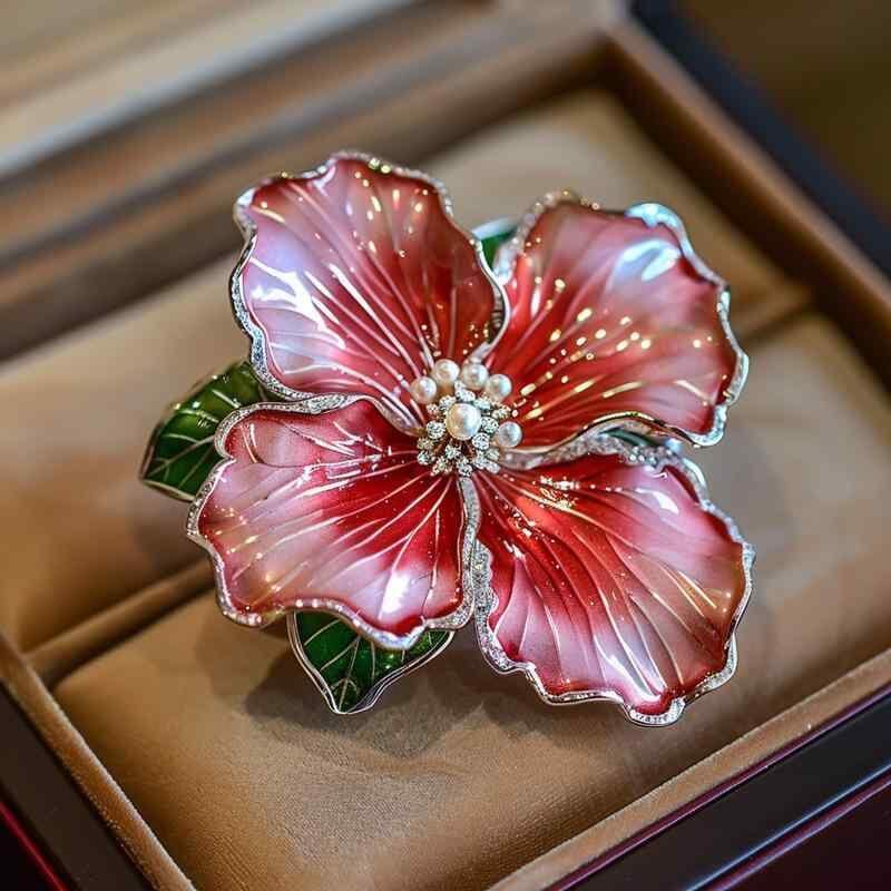 ブローチ レディース ホウセンカ フラワー グラデーション ジルコニア装飾 高級感 ライトラグジュアリー 銅製 チャイナドレス用 記念日 プレゼント オリジナルデザイン