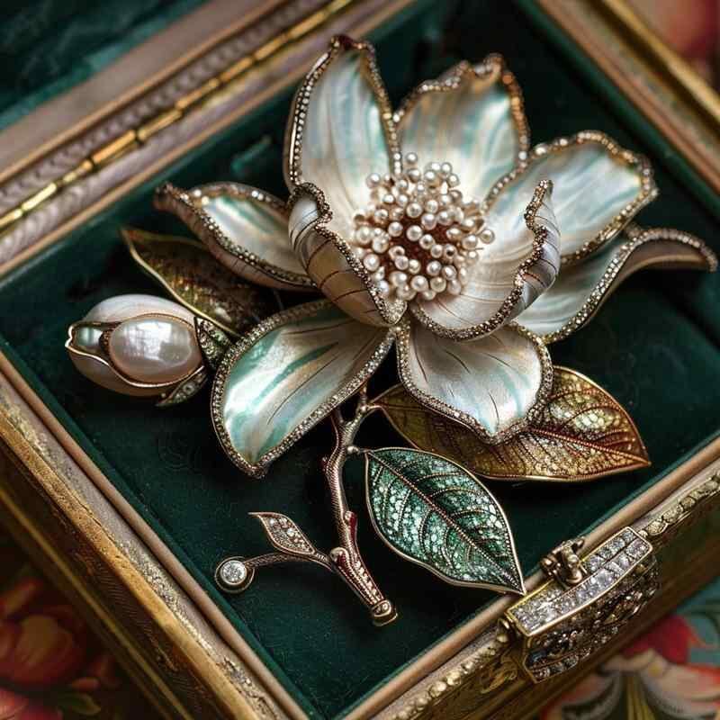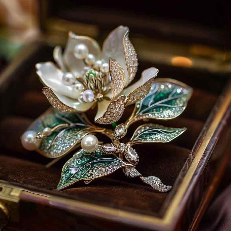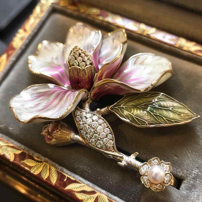 ブローチ レディース クラシック 木蓮 花 フラワー 高級感 華やか エレガント ラインストーン 煌めく 銅製 電気メッキ加工 オリジナルデザイン フォーマル