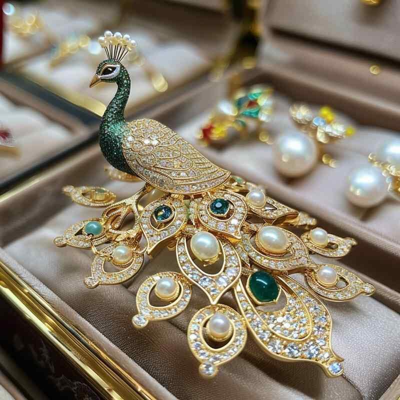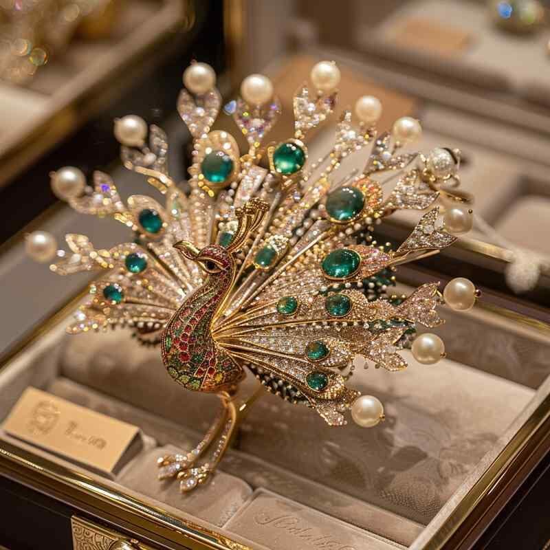 ブローチ レディース 女性用 孔雀 動物モチーフ ヴィンテージ レトロ 豪華 高級感 水晶 銅製 電気メッキ加工 エレガント 上品 アクセサリー ファッション小物 フォーマル パーティー 結婚式 秋冬