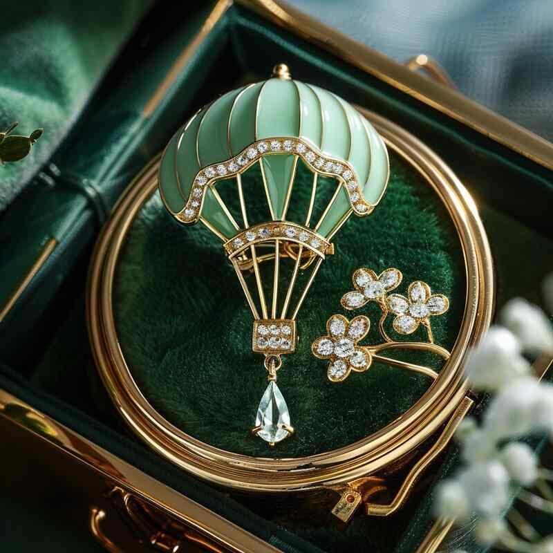 ブローチ レディース パラシュート ドーパミン ライトグリーン 銅製 電気メッキ加工 オリジナルデザイン 個性的 秋冬 ファッション小物 装飾品 ギフト 贈り物