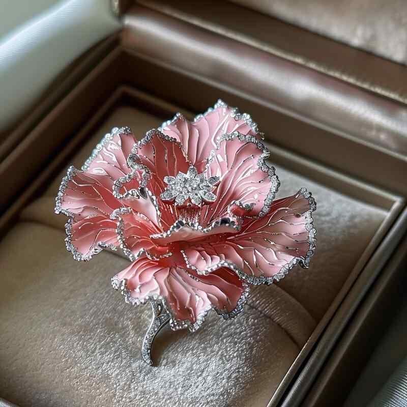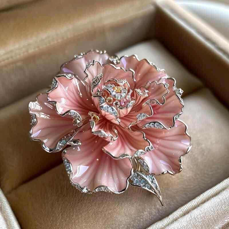 ブローチ レディース 宮廷風 豪華 カーネーション 花 フラワー コサージュ 上品 エレガント 高級感 多層構造 銅製 電気メッキ加工 アクセサリー