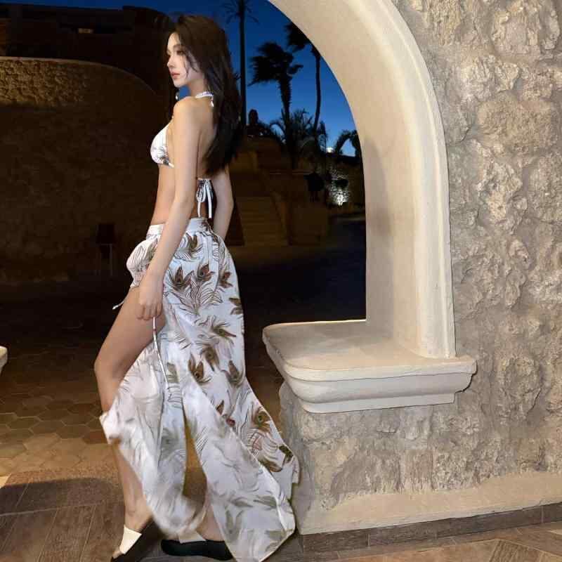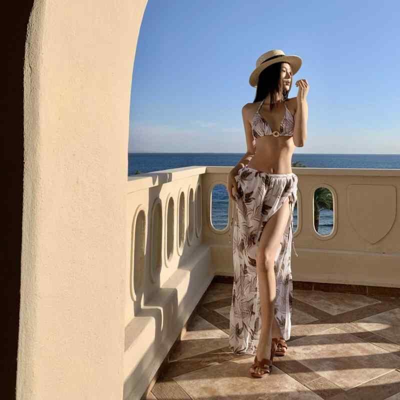 水着 レディース 高級感 リゾート ビキニ セパレート ロングスカート シフォン 3点セット フォトジェニック カップ付き ノンワイヤー 速乾性 高伸縮性 セクシー バックシャン ポリエステル サマー