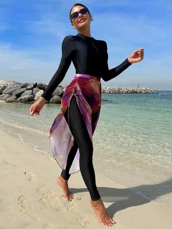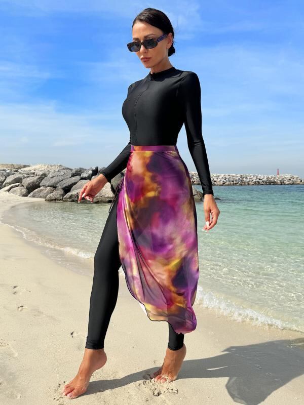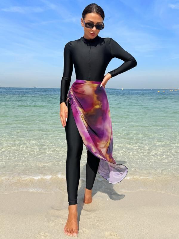 水着 レディース 体型カバー UVカット 長袖 スイムウェア 露出控えめ 日焼け対策 伸縮性 細見え スタイルアップ ポリエステル 速乾 パット付き ノンワイヤー マリンスポーツ 夏 プール ビーチ 海水浴