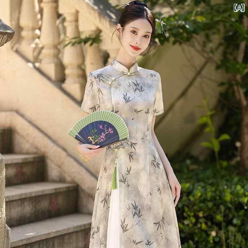 ワンピース レディース 新チャイナスタイル チャイナドレス アオザイ風 ウエストマーク ウエストシェイプ エレガント スタイルアップ 細見え 春夏 ミディ丈 ノースリーブ ポロ襟 ポリエステル サイドスリット 大人エレガント
