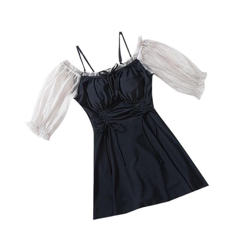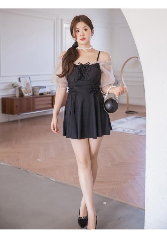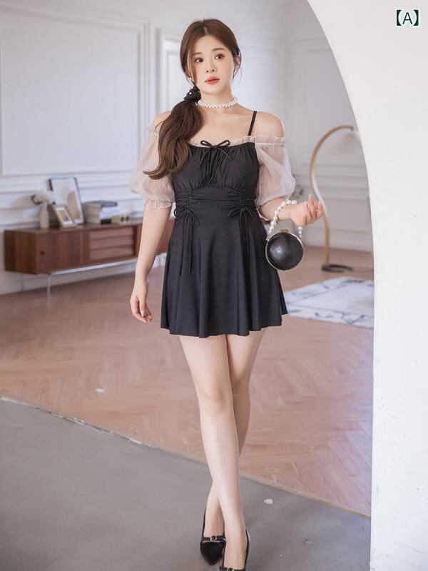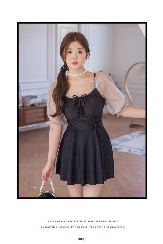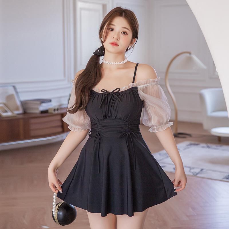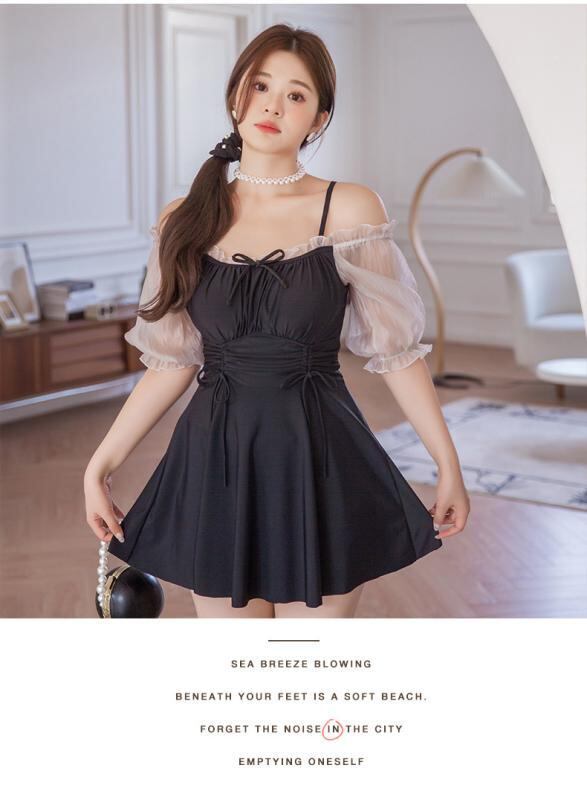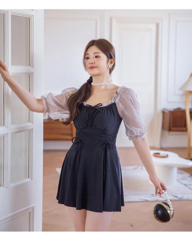 水着 レディース ワンピース 韓国風 体型カバー 着痩せ 無地 温泉 海水浴 プール スイミング 競泳用 ブラック XL XXL XXXL 4XL 5XL