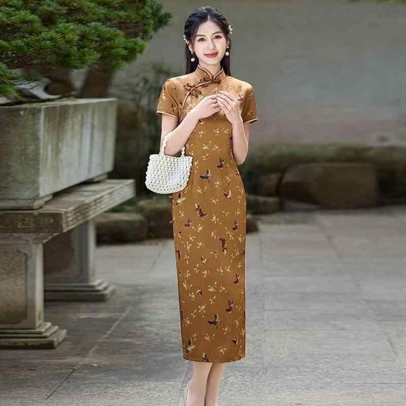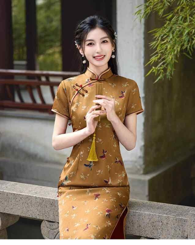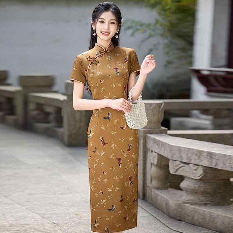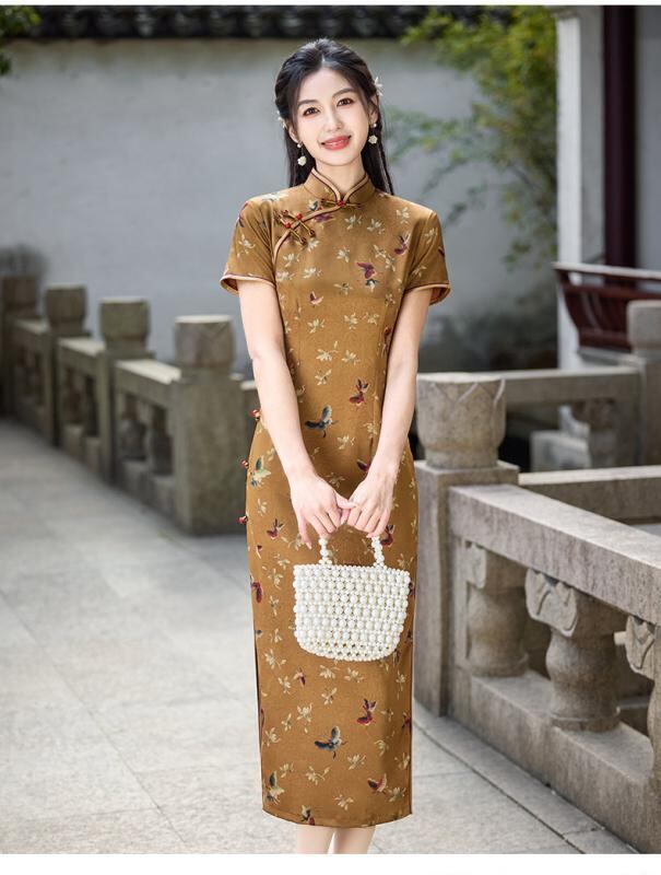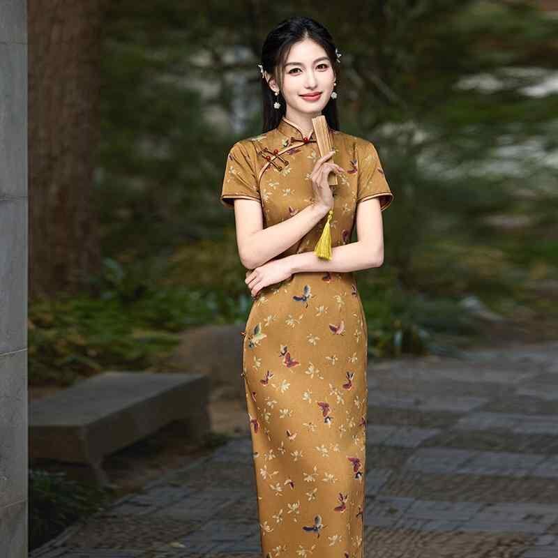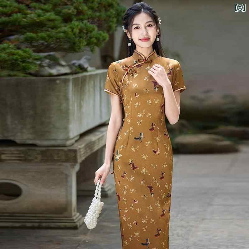 チャイナドレス レディース 新中式 絶美 民国風 オールド上海スタイル 高級感 エレガント 上品 ロング丈 フォーマル パーティードレス 普段使い 春夏 結婚式 お呼ばれ ポリエステル スタンドカラー 斜め襟
