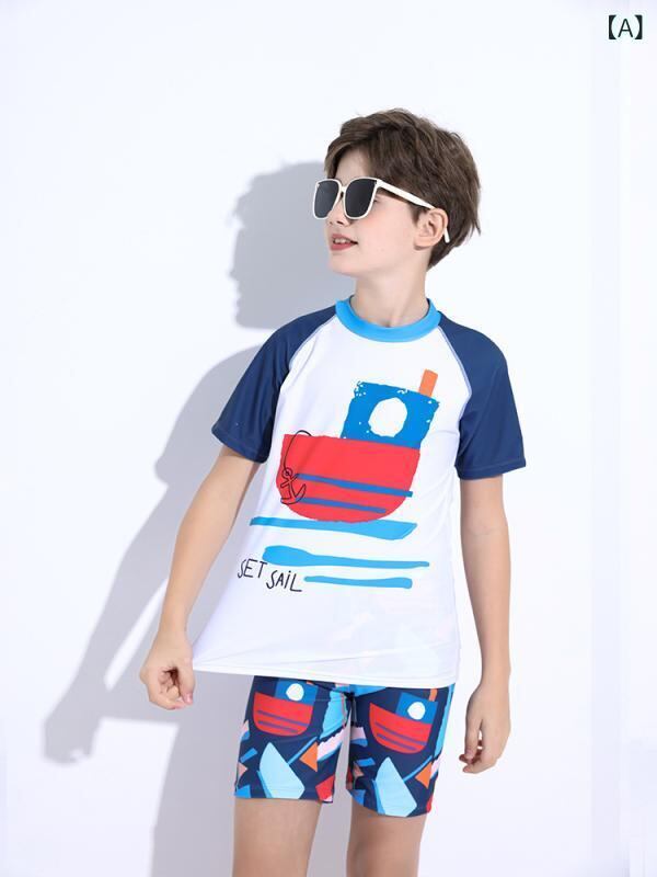 水着 男の子 キッズ ジュニア 青少年 学生 セパレート スイムパンツ 上下セット 大きいサイズ ゆったり スイミング プール 海 レジャー ナイロン ポリエステル