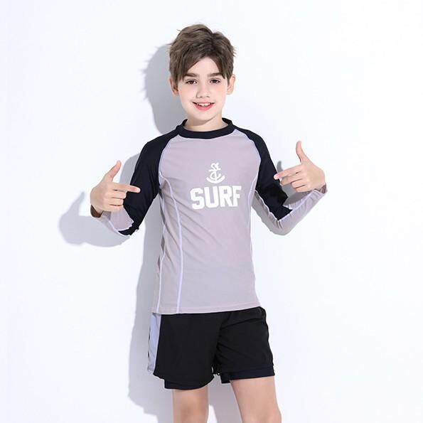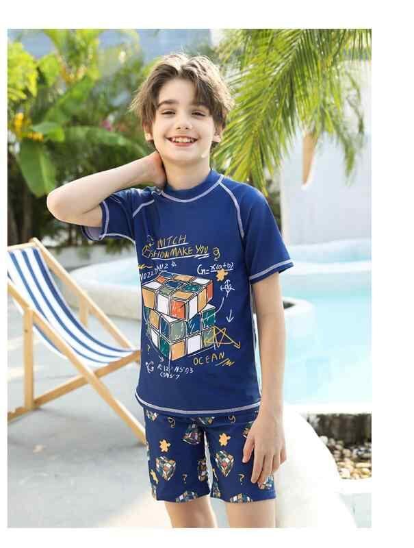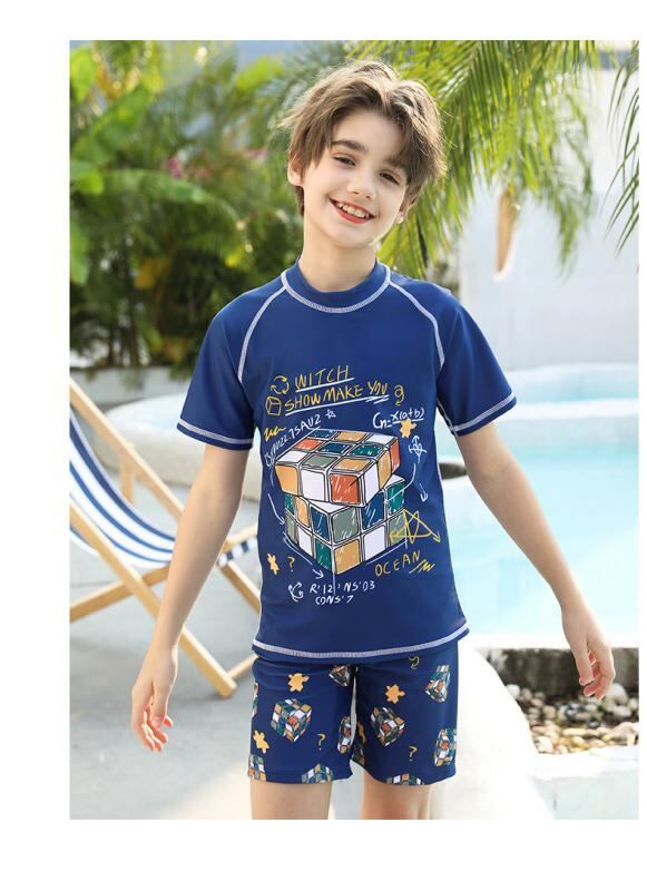 水着 ジュニア 男の子 セパレート スイムウェア 半袖 上下セット 速乾 大きいサイズ プール 温泉 海水浴 ナイロン ポリエステル ネイビー ブラック