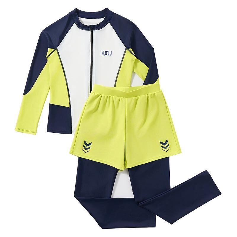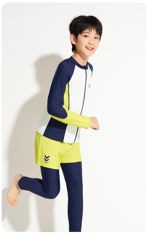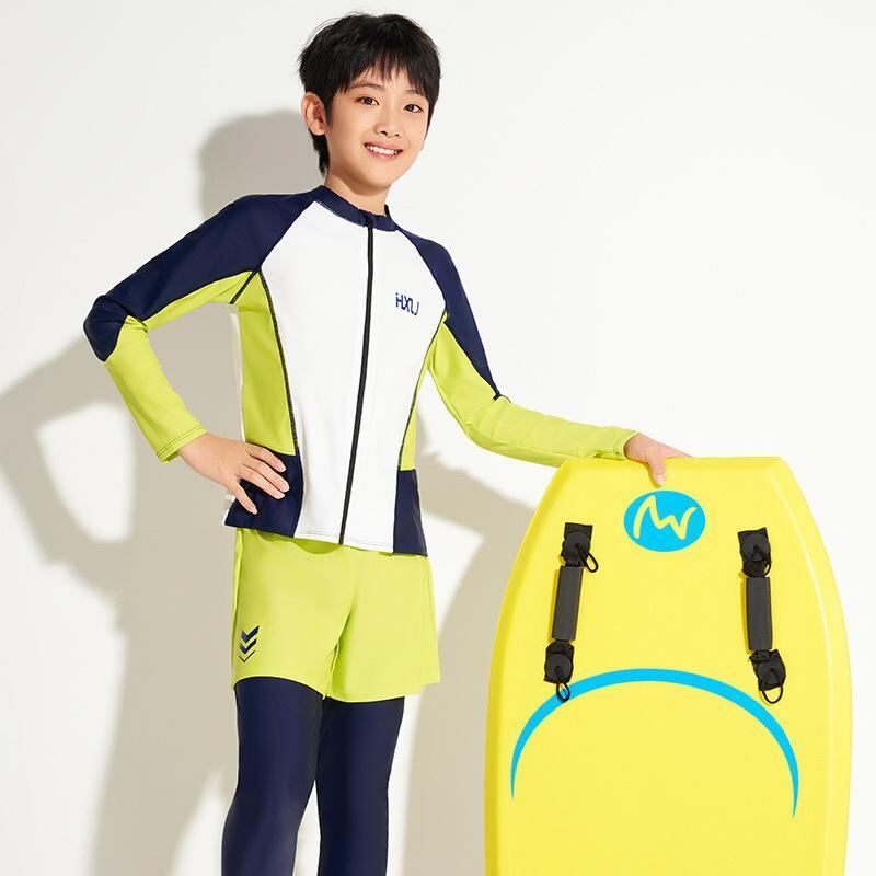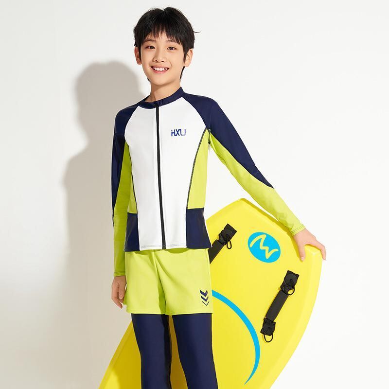 水着 キッズ 男児用 UVカット 日焼け防止 長袖 ロングパンツ セパレート 2点セット ナイロン ポリエステル プール 海 スイミング レジャー マリンスポーツ イエローグリーン