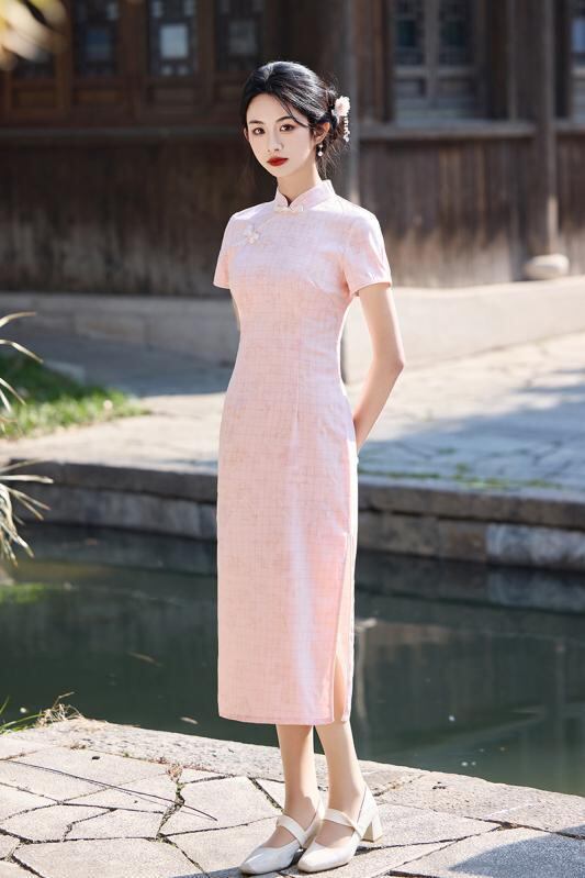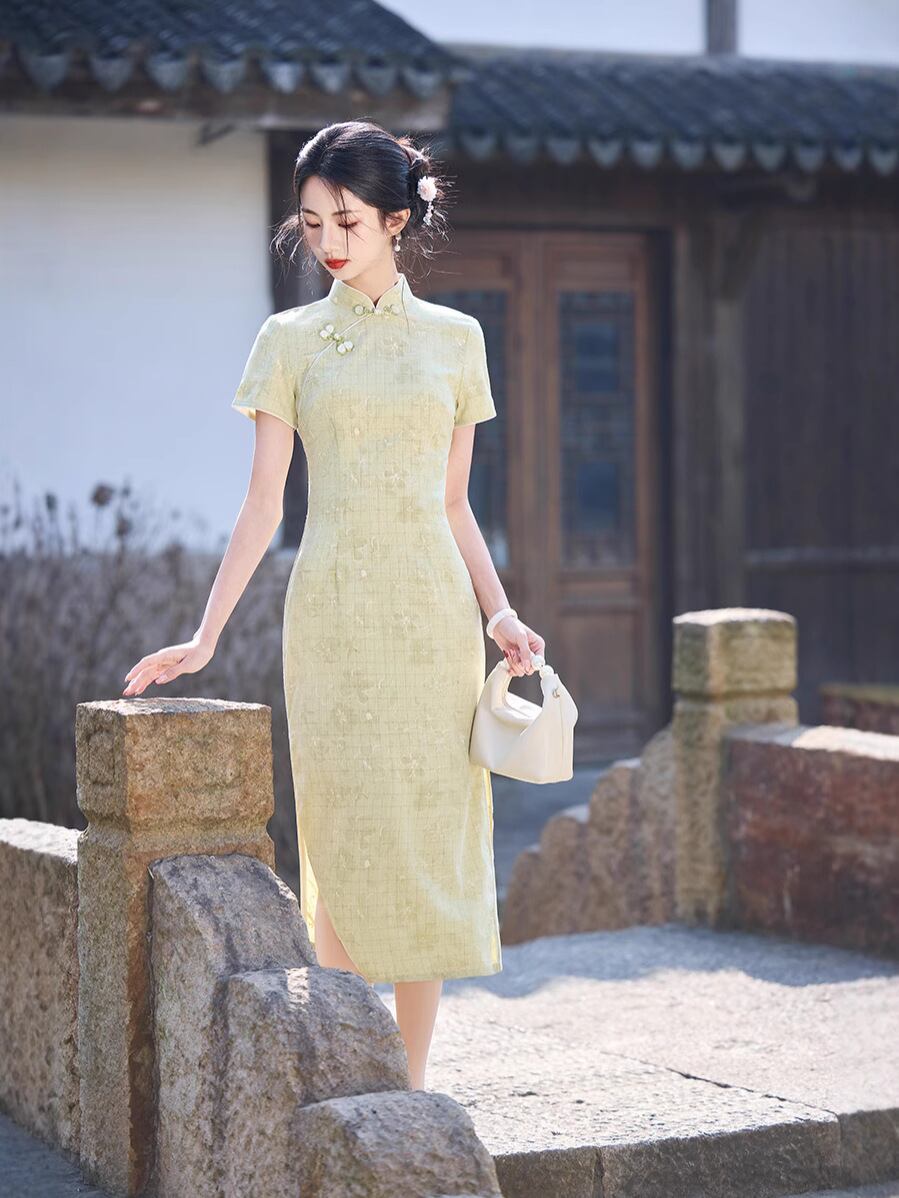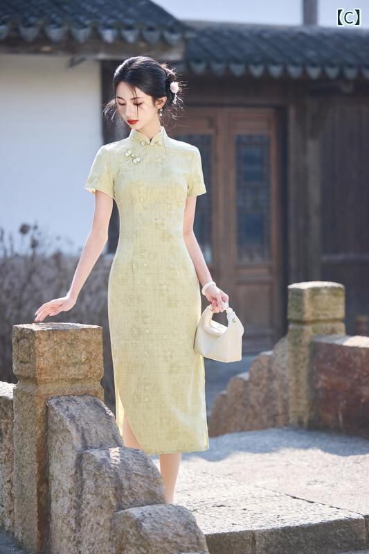 チャイナドレス レディース フェミニン スタイリッシュ 中国風 夏物 ミドル丈 ママ向け 若見え 上品 エレガント レトロ クラシック 新 ワンピース ドレス