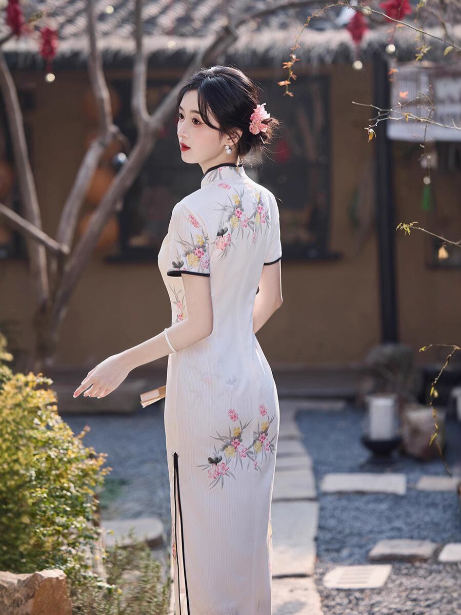 チャイナドレス レディース ワンピース ネオチャイニーズスタイル 白 向け 夏物 普段使い デイリー 上品 気品 高級感 華やか