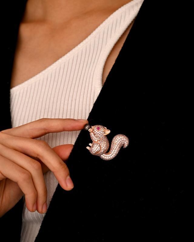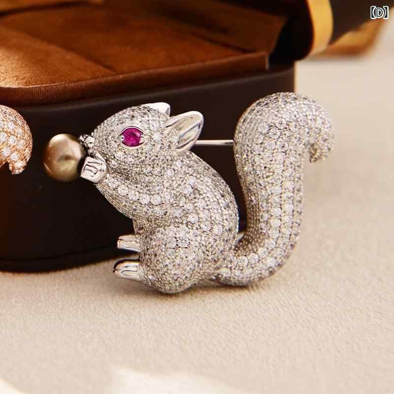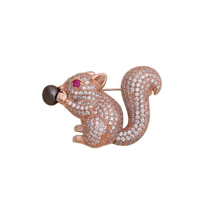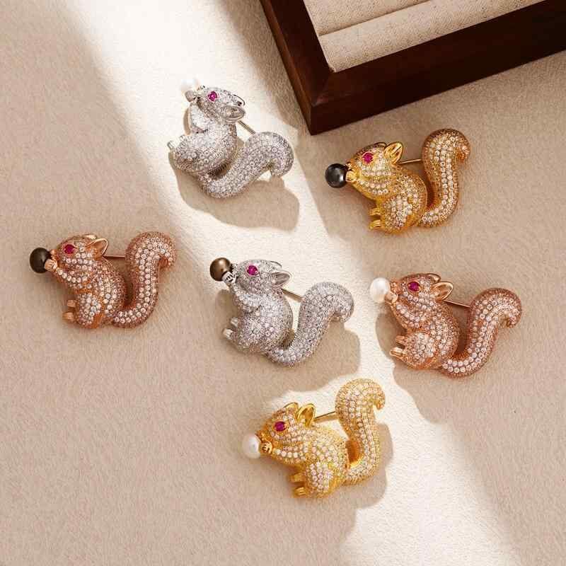 ブローチ 淡水パール レディース セレモニー フォーマル 入学式 おしゃれ 胸飾り 高級感 マイクロパヴェ ジルコニア リス 風船 2WAY ロングネックレス