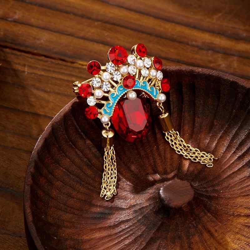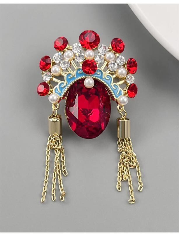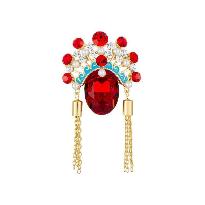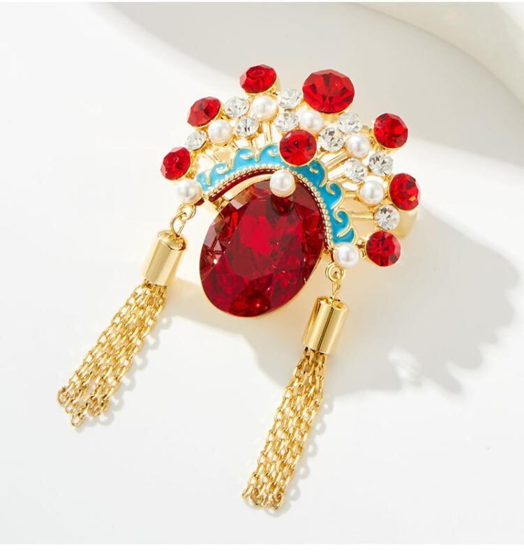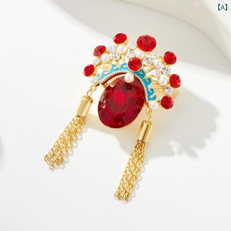 ブローチ レディース 中国風 京劇 刀馬旦 レトロ ヴィンテージ エスニック ユニーク 個性的 赤 隈取 花旦 タッセル 精巧 銅製 エナメル加工 胸飾り