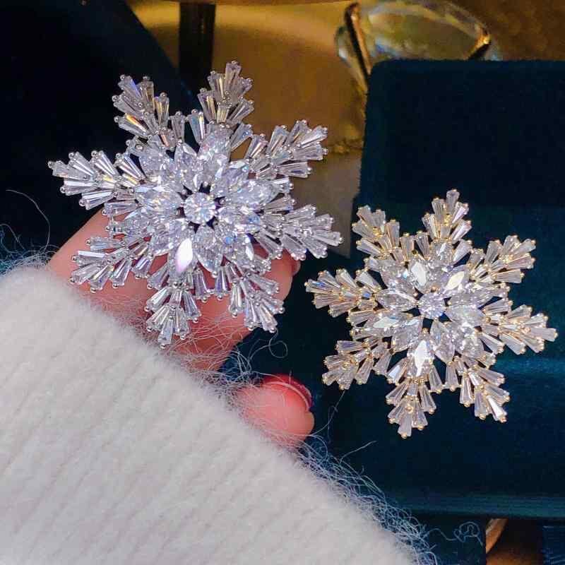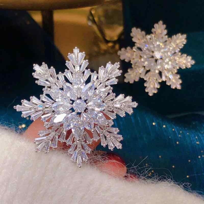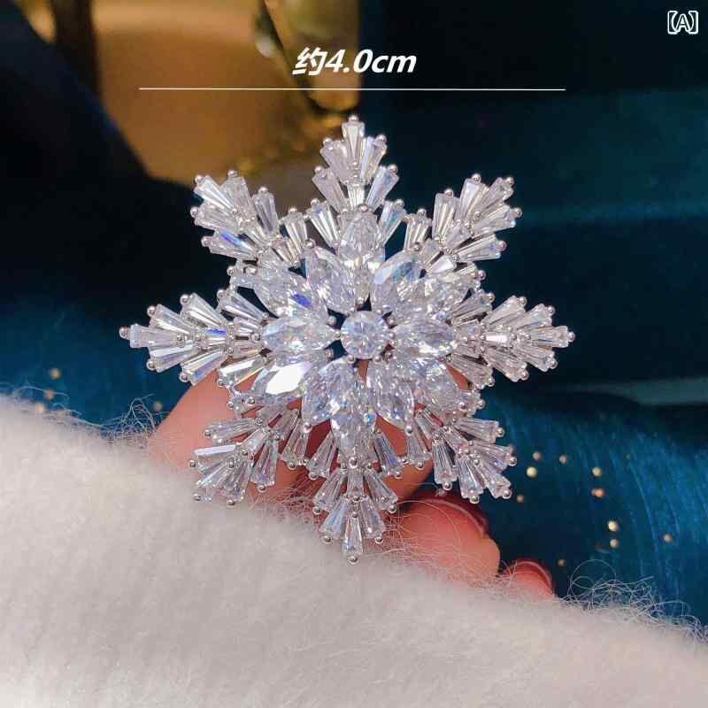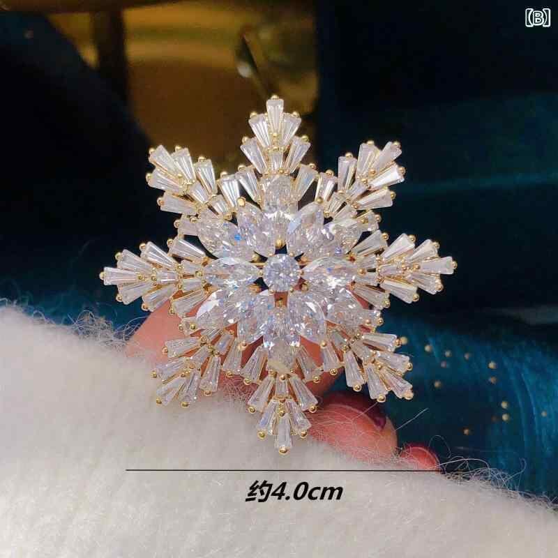 ブローチ レディース 高級感 キラキラ ジルコニア 銅製 電気メッキ加工 多層 立体 雪の結晶モチーフ エレガント おしゃれ 上品 スーツ コート ジャケット フォーマル アクセント