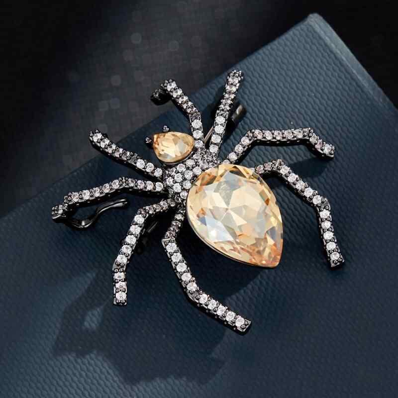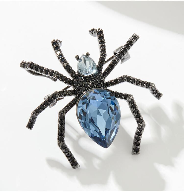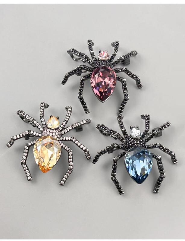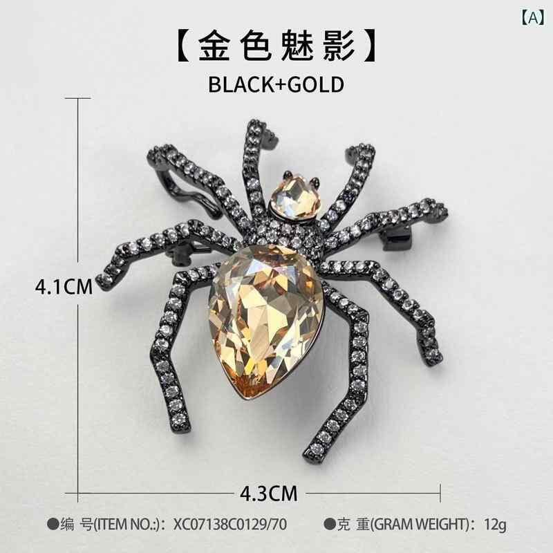 ブローチ レディース スパイダー 蜘蛛 昆虫 インセクト クリスタル 高級感 欧米風 銅製 マイクロインレイ ピン 個性的 動物モチーフ おしゃれ