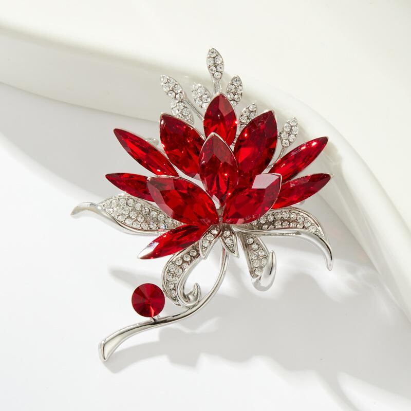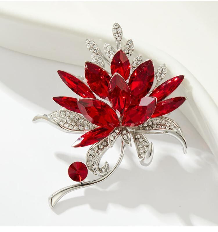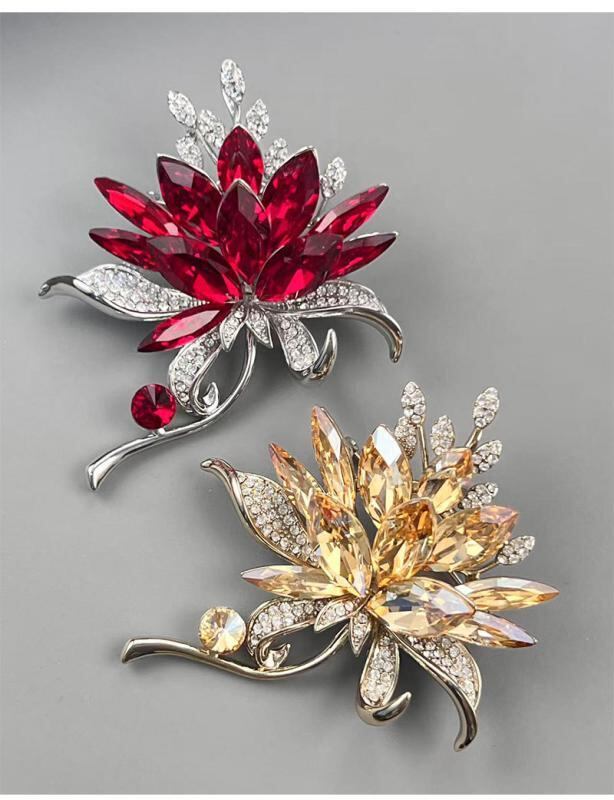 ブローチ レディース クリスタル フラワー 高級感 上品 繊細 精巧 ライトラグジュアリー スーツ ジャケット アクセサリー フォーマル カジュアル 銅製 電気メッキ