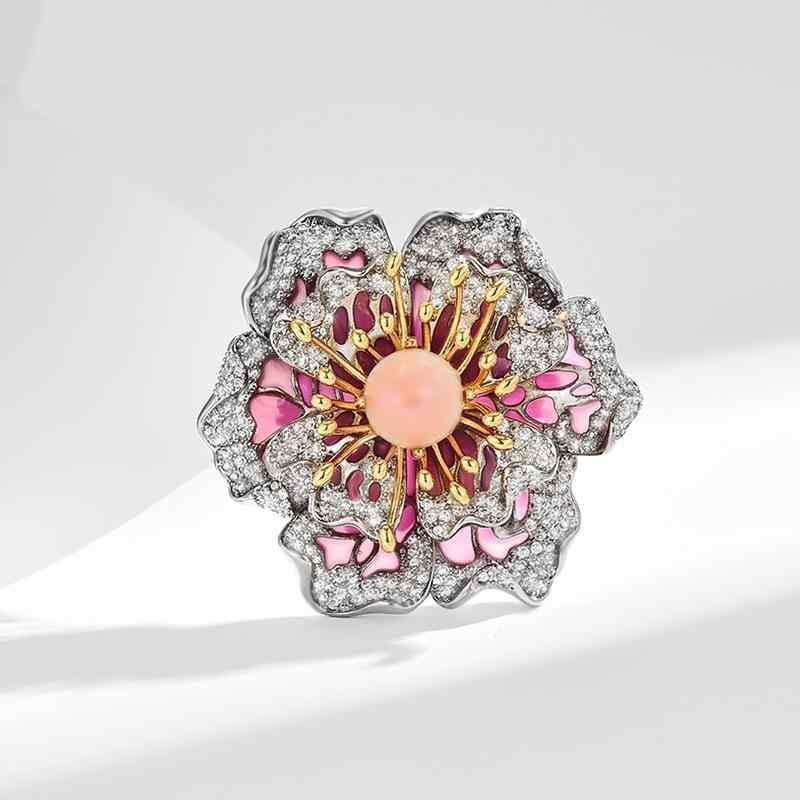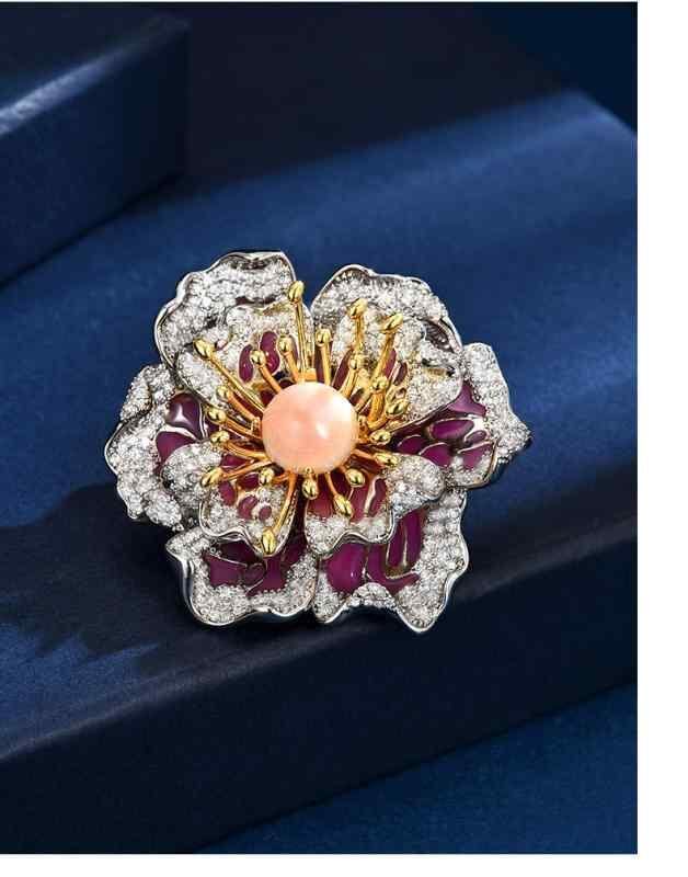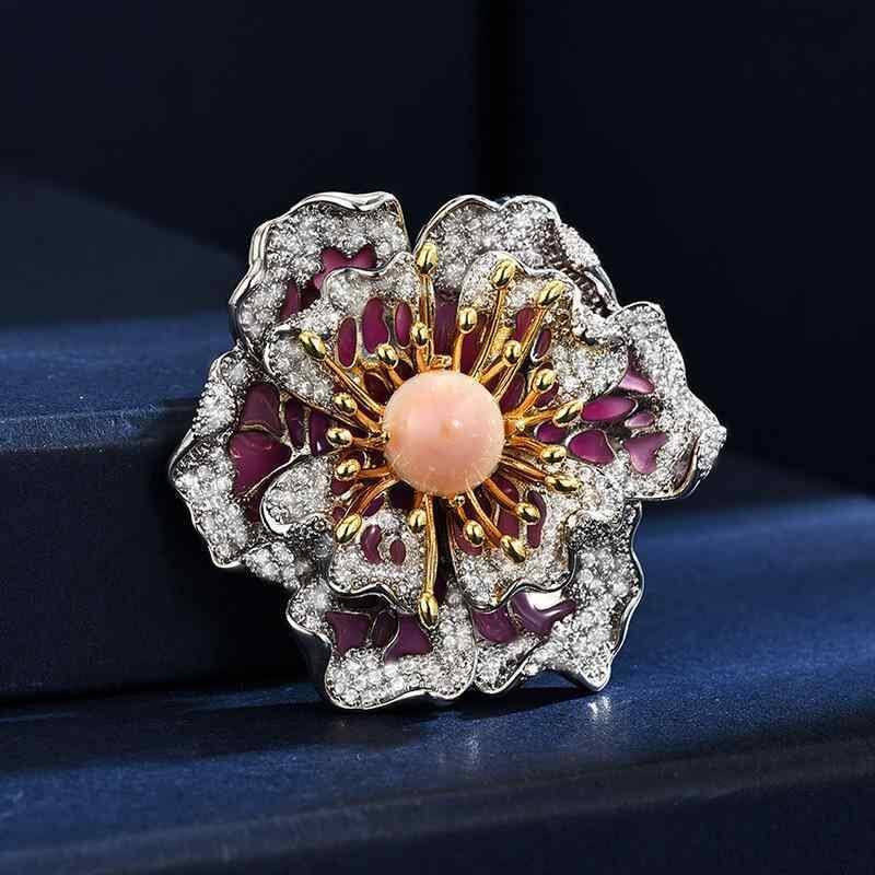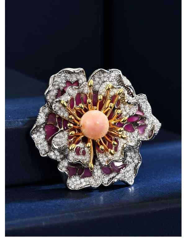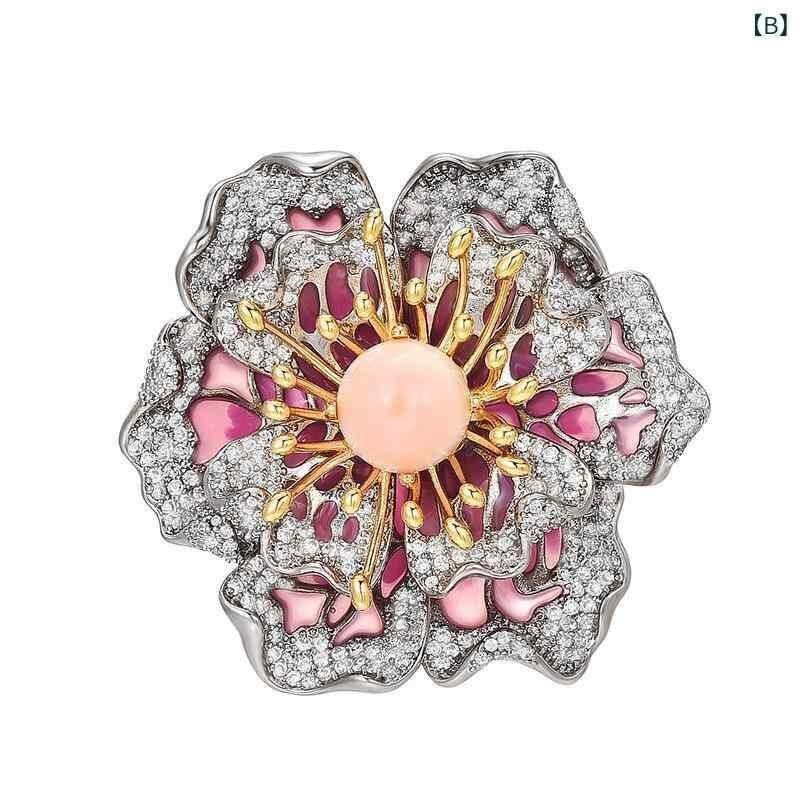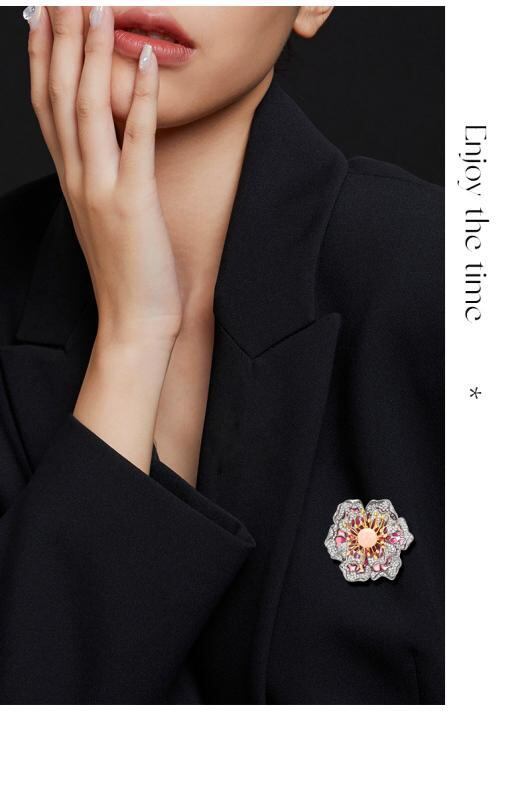 ブローチ レディース 牡丹の花 中国風 レトロモダン 高級感 繊細 エレガント 個性的 銅製 ラインストーン ゴールド シルバー 秋冬