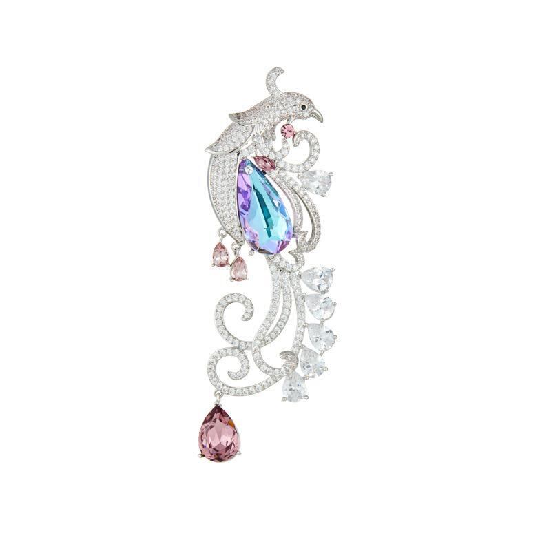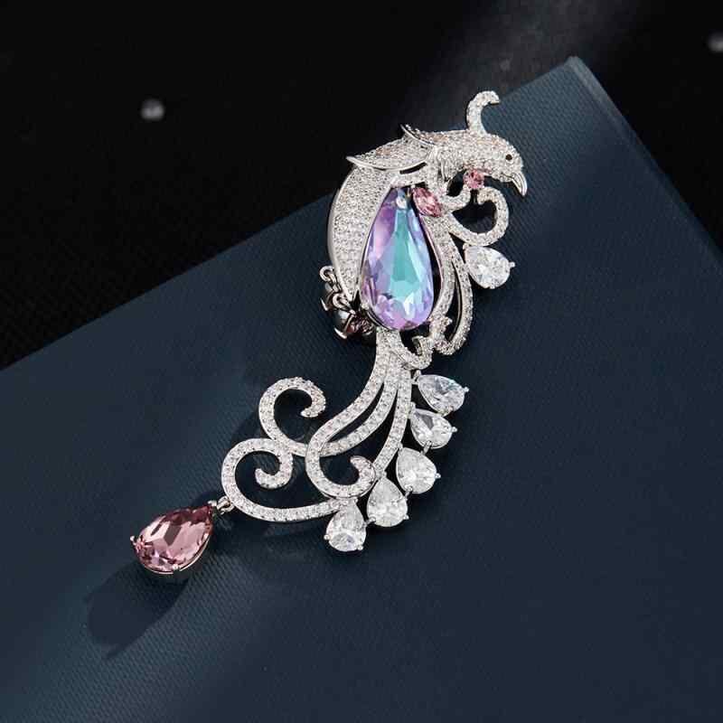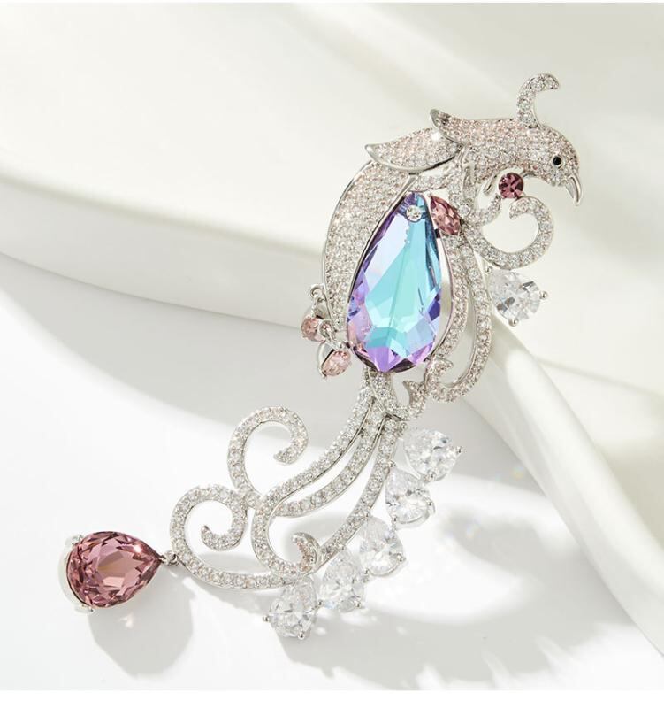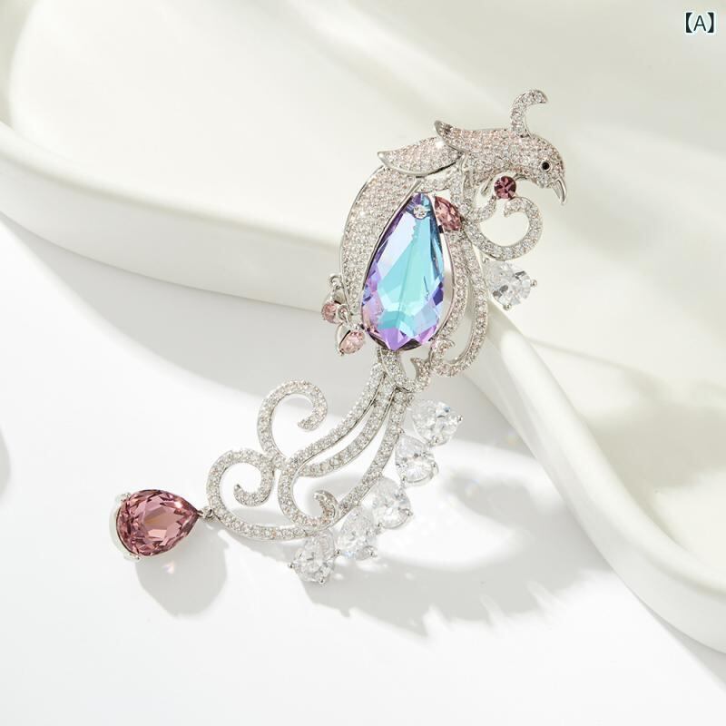 ブローチ レディース 鳳凰モチーフ 高級感 エレガント レトロ ヴィンテージ クリスタル 装飾 2WAY ペンダント コサージュ 銅製 繊細な細工 フォーマル パーティ 普段使い アクセサリー