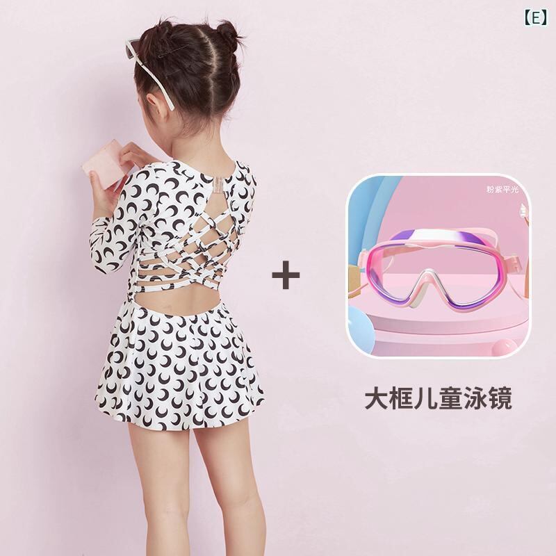 水着 キッズ 女の子 女児 ワンピース 夏 スカートタイプ フリル プリンセス 可愛い ベビー 幼児 小学生 ジュニア プール 海水浴 ポリエステル ホワイト 三日月柄