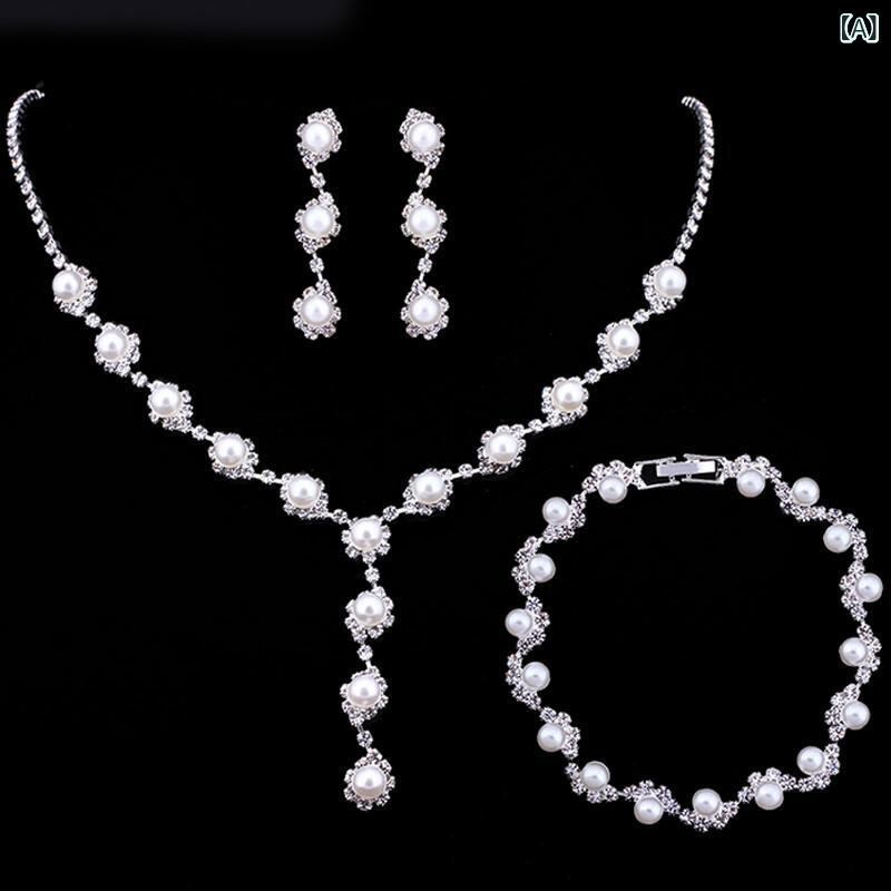 ブライダルアクセサリー レディース 女性用 花嫁 結婚式 披露宴 二次会 パーティー パール パール ラインストーン ネックレス イヤリング ブレスレット 3点セット 華やか エレガント 上品 ゴージャス