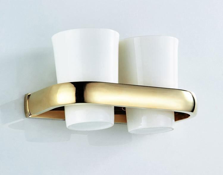 洗面台収納 歯ブラシ&マウスウォッシュ ダブルコップ ホルダー 真鍮製 金メッキ仕上げ ゴールドカラー 高級感 シンプル おしゃれ 衛生的 洗面用品