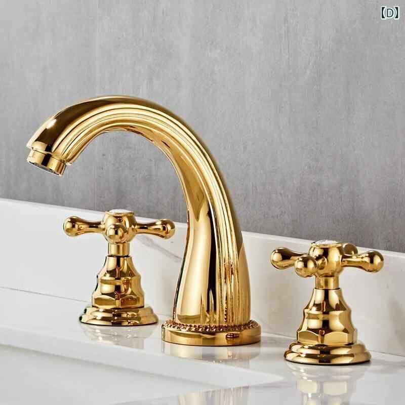 混合栓 ヨーロピアン アンティーク レトロ 真鍮製 セパレートタイプ 洗面台 バスタブ兼用 ダブルハンドル 3ホール 3点セット セラミックバルブ内蔵
