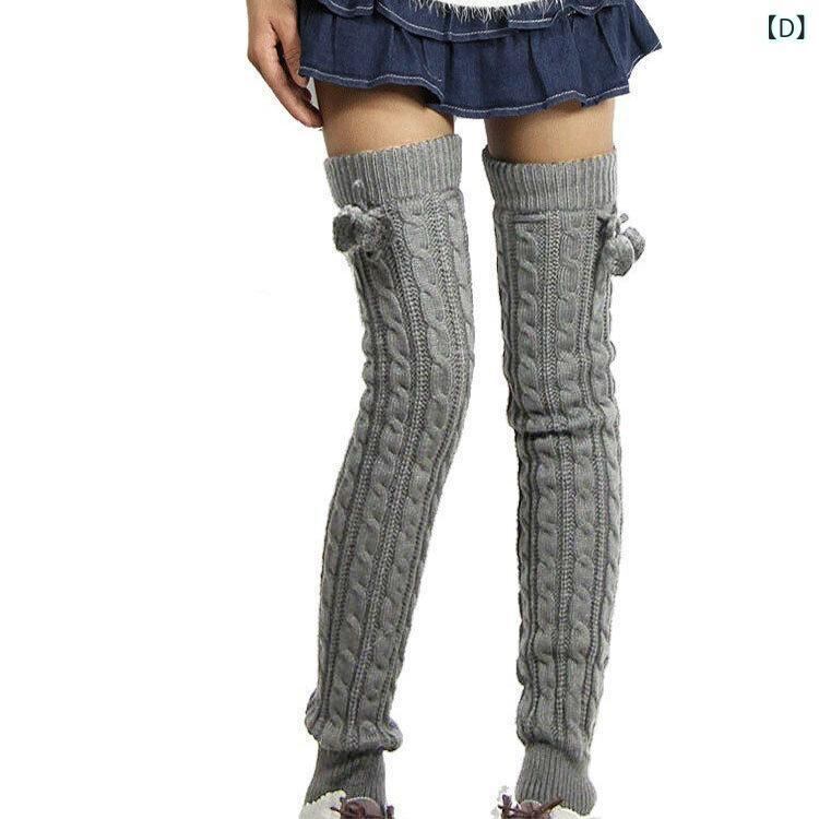 レッグウォーマー レディース 女性用 アクリル オーバーニー ニーハイ ロング丈 厚手 暖かい ポンポン付き ケーブルニット くしゅくしゅ ルーズソックス風 防寒 秋冬