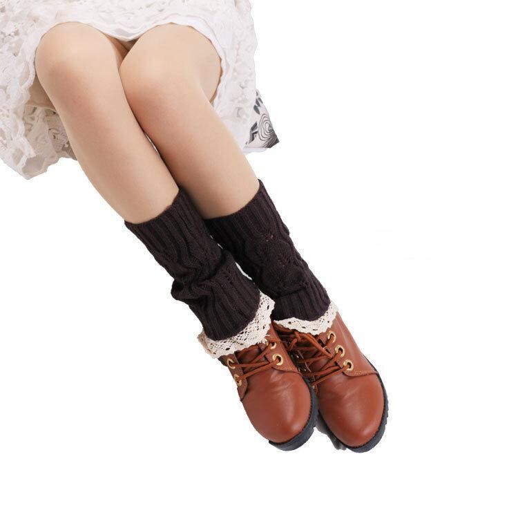 レッグウォーマー レディース 女性用 欧米風 秋冬 透かし編み ニット レース フリル ショート丈 アクリル 保温 あったか 防寒 カジュアル 普段使い 無地