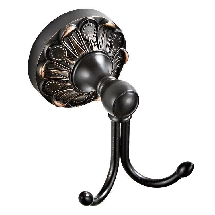 フック 黒 花柄 台座 真鍮製 黒古銅色 コートハンガー ウォールハンガー 壁掛け キッチン バスルーム 洗面所 トイレ 玄関 リビング 寝室 レトロ アンティーク調 おしゃれ インテリア
