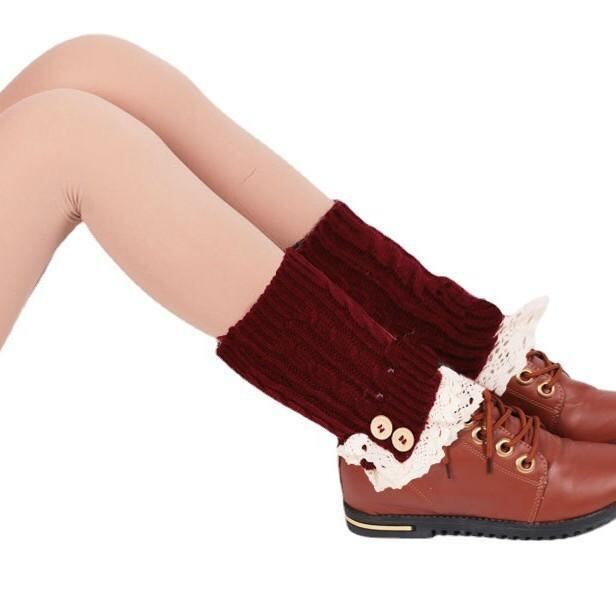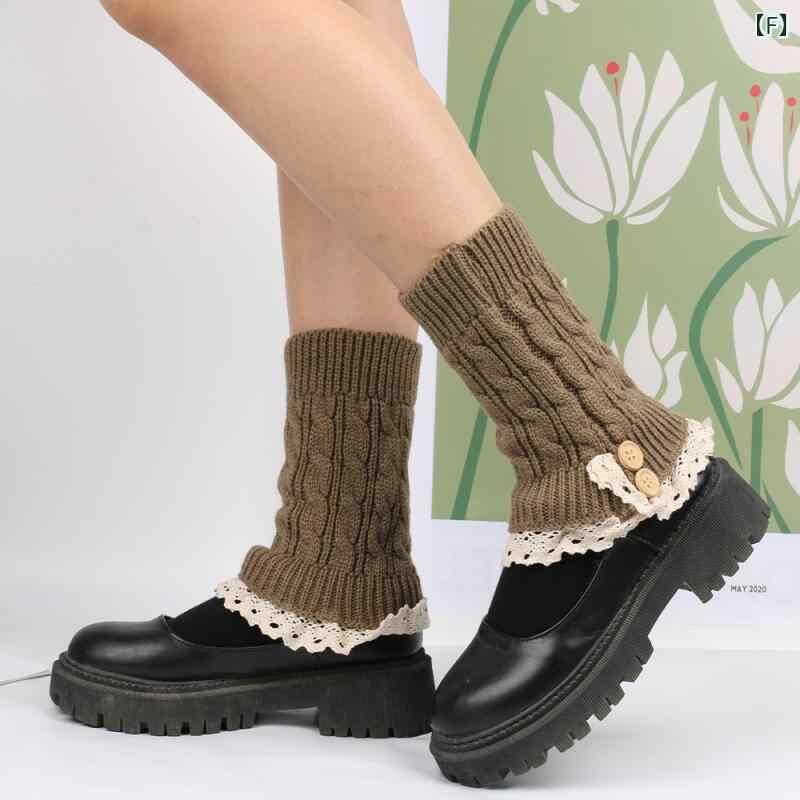 レッグウォーマー レディース ボタン レース飾り ショート丈 ニット ソックスカバー アクリル製 無地 おしゃれ カジュアル 普段使い 秋冬春 防寒対策 足元カバー