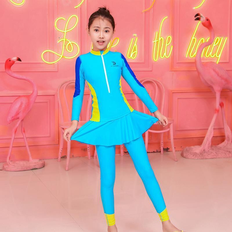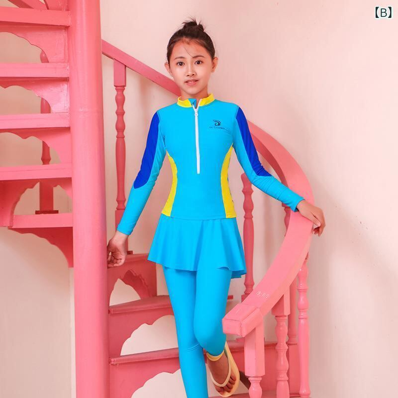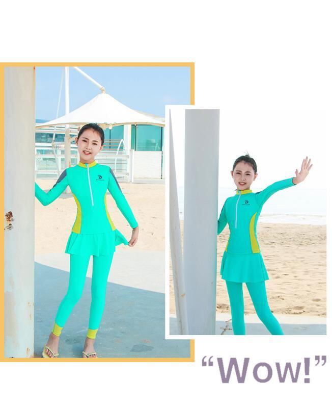 水着 レディース ジュニア 女の子 セパレート スカート付き 長袖 ロングパンツ 無地 UVカット 日焼け防止 体型カバー 速乾 カジュアル デザイン
