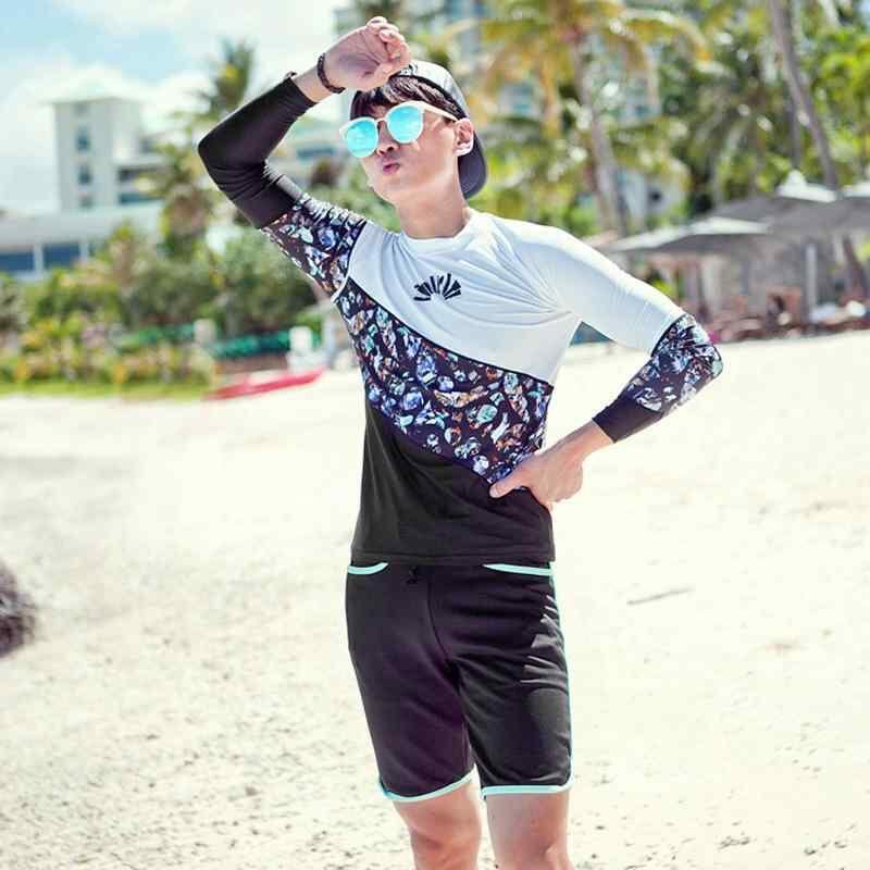 水着 メンズ 長袖 UVカット 速乾性 スイムウェア サーフィン ビーチ プール マリンスポーツ 上下セット ショートパンツ ポリエステル 伸縮性 ブラック 男性用