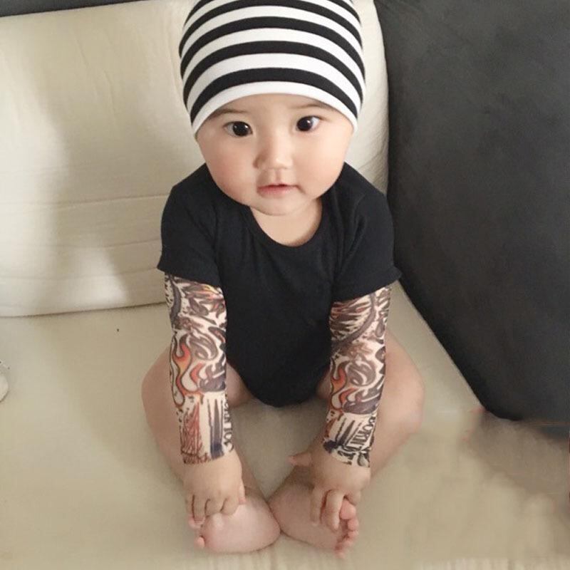 ロンパース 男の子 ベビー フェイクタトゥー袖 おもしろ ユニーク やんちゃ ワイルドデザイン カバーオール 乳幼児 赤ちゃん 服 長袖 コットン 春秋 普段使い お出かけ かわいい ブラック ホワイト