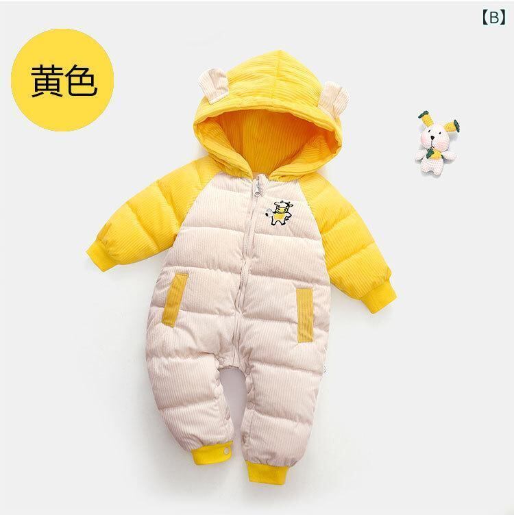 カバーオール 新生児 ベビー 男女兼用 裏起毛 厚手 中綿入り コーデュロイ フード付き ジップアップ 防寒 保温 秋冬 お出かけ
