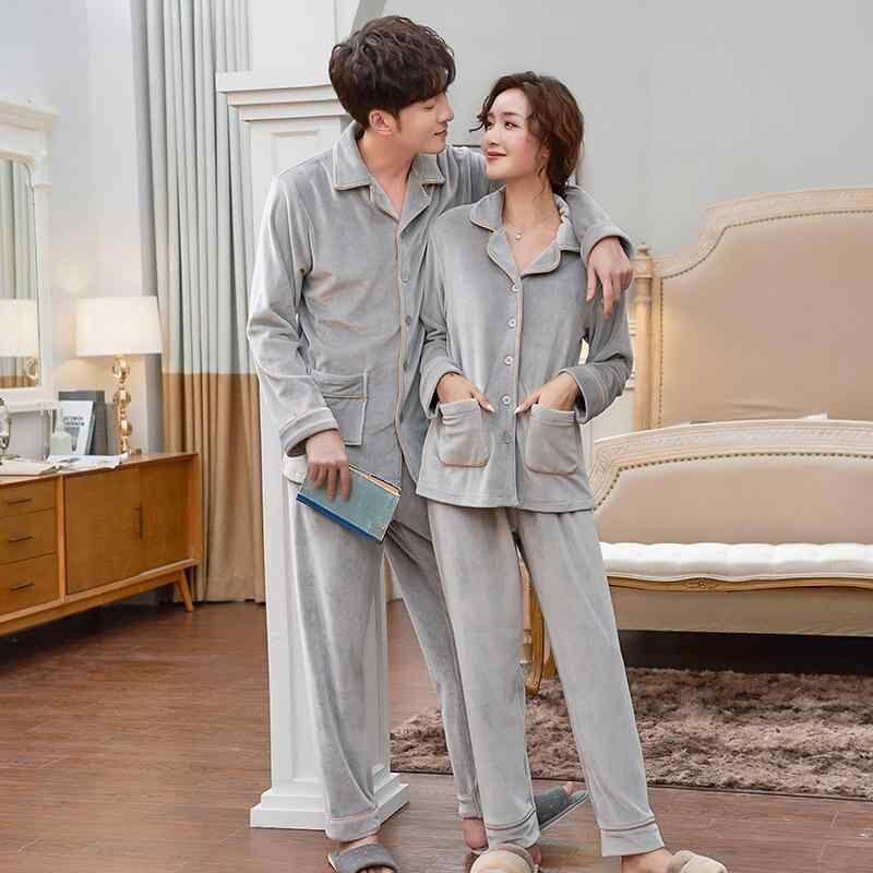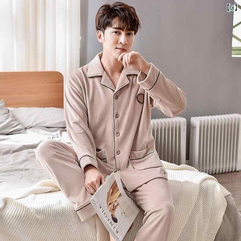 パジャマ カップル 男女兼用 秋冬 サンゴフリース とろける肌触り 極厚 あったか 長袖 長ズボン 前開き 襟付き カーディガン 伸縮性 快適 通気性 ルームウェア 上下セット ワンマイルウェア