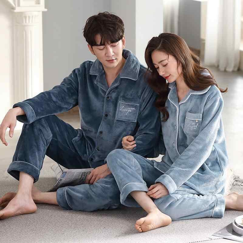 パジャマ レディース 女性用 メンズ 男性用 カップル ペア 秋冬 厚手 裏起毛 フランネル あったか 保温 サンゴフリース ふわふわ ルームウェア 部屋着 上下セット 長袖 長ズボン 開襟 快適 おうち時間 防寒