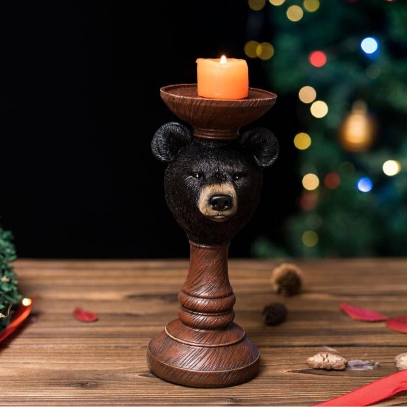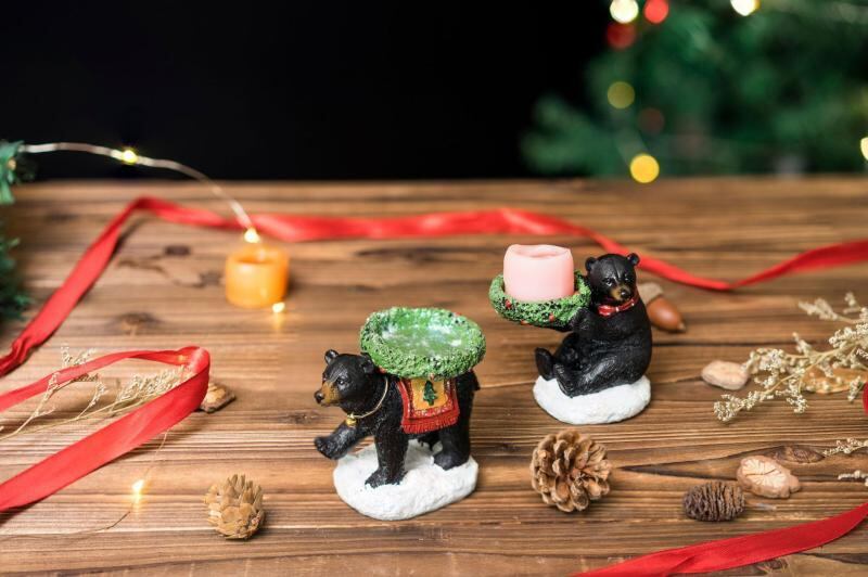 置物 クリスマス 黒クマ 樹脂製 燭台 キャンドルスタンド リビング 玄関 卓上 インテリア オブジェ オーナメント おしゃれ 飾り デコレーション