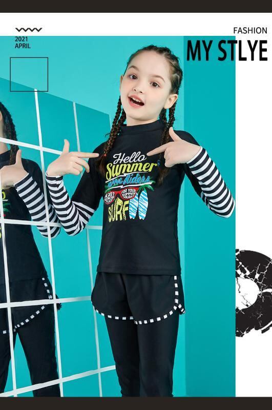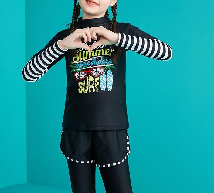 水着 キッズ ジュニア 女の子 長袖 セパレート スイムウェア 上下セット UVカット スイムパンツ ポリエステル ナイロン素材 プール 海水浴 水泳 マリンスポーツ