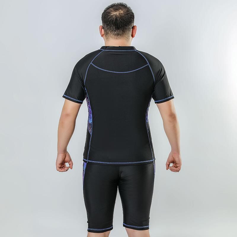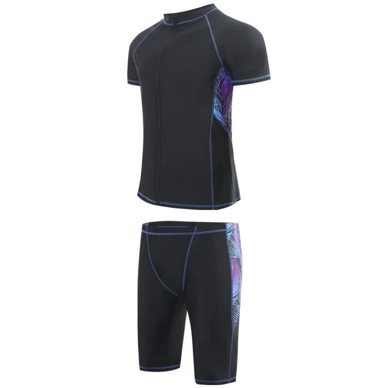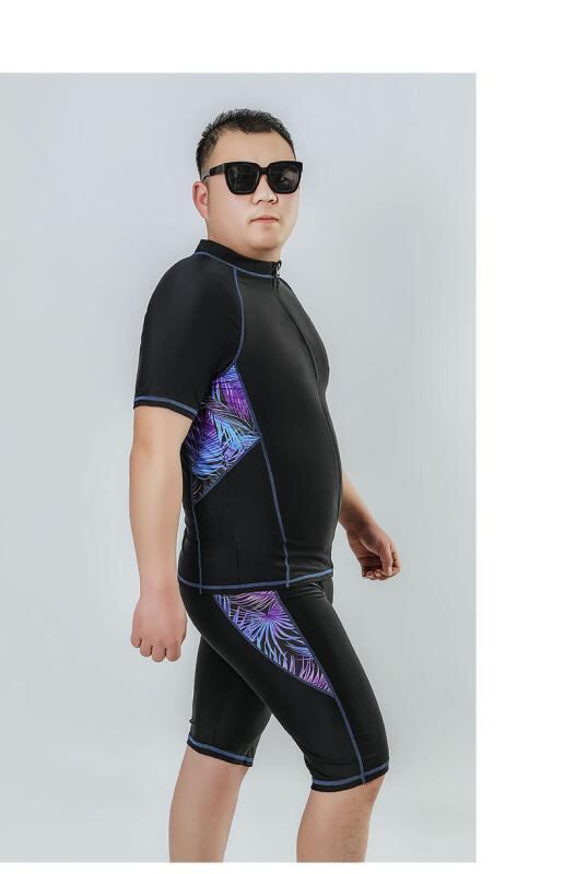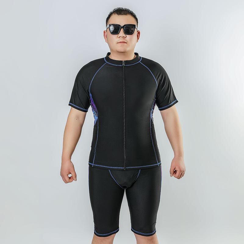水着 メンズ 大きいサイズ ビッグサイズ セパレート ジップアップ 半袖 ハーフパンツ 速乾 UVカット ナイロン素材 体型カバー サーフィン 温泉 スパ マリンスポーツ ブラック ランニング フィットネス 水泳